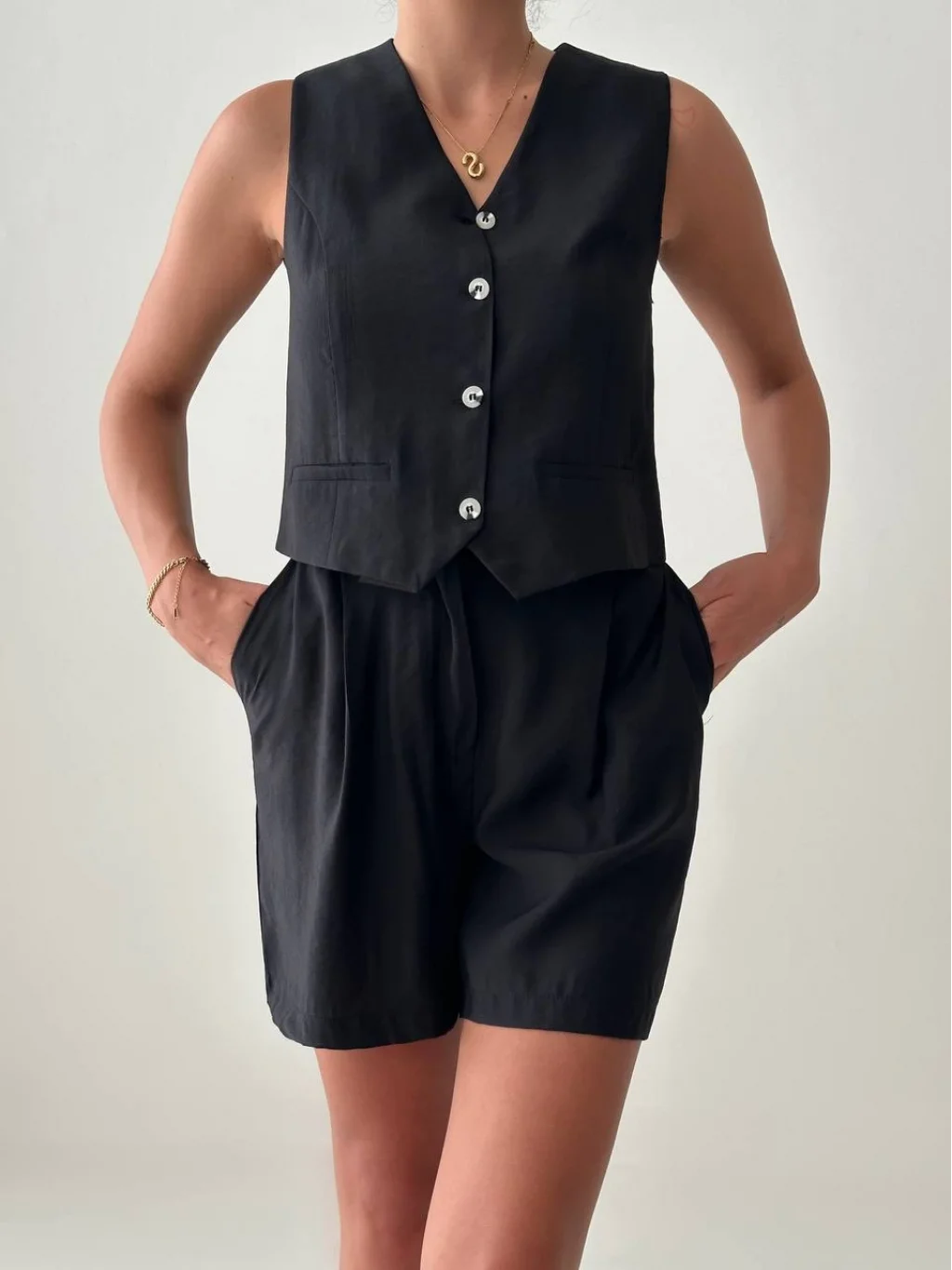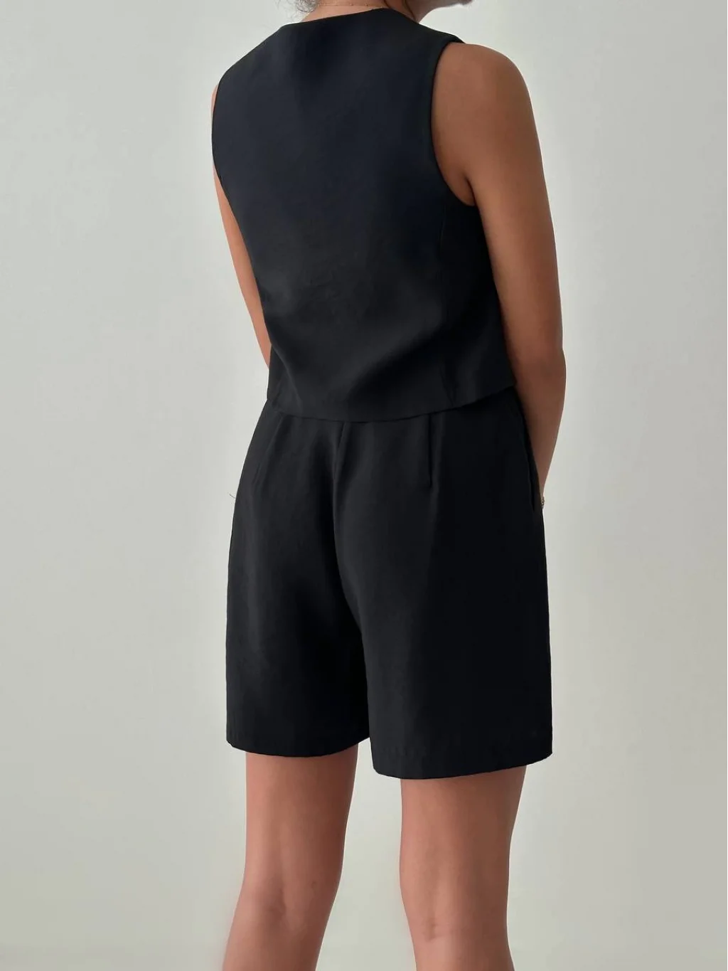 EXEN MODAL KUMAŞ ŞORT YELEK TAKIM SİYAH