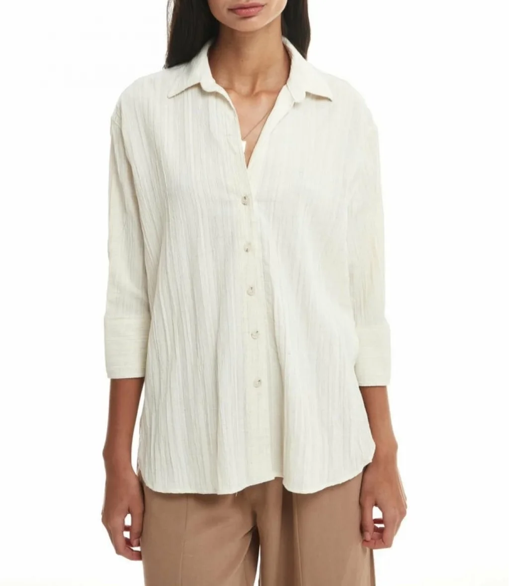 QUZU Fakir Kol Düğmeli Gömlek Naturel