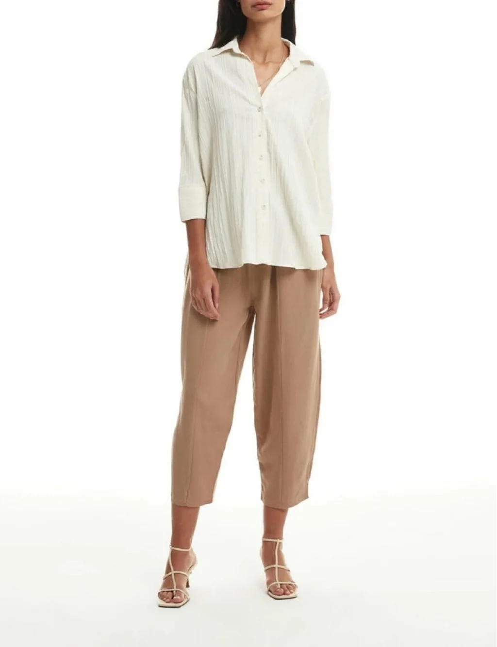 Viskon içerikli, truvakar kol, düğmeli, asimetrik kesim, oversize gömlek.
