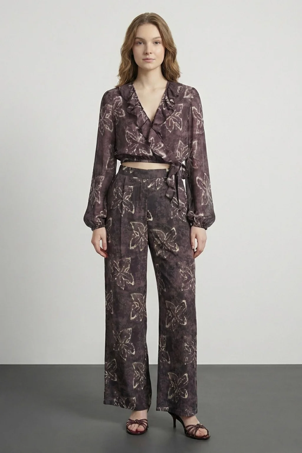 Fırfır Detaylı Bluz Kahve