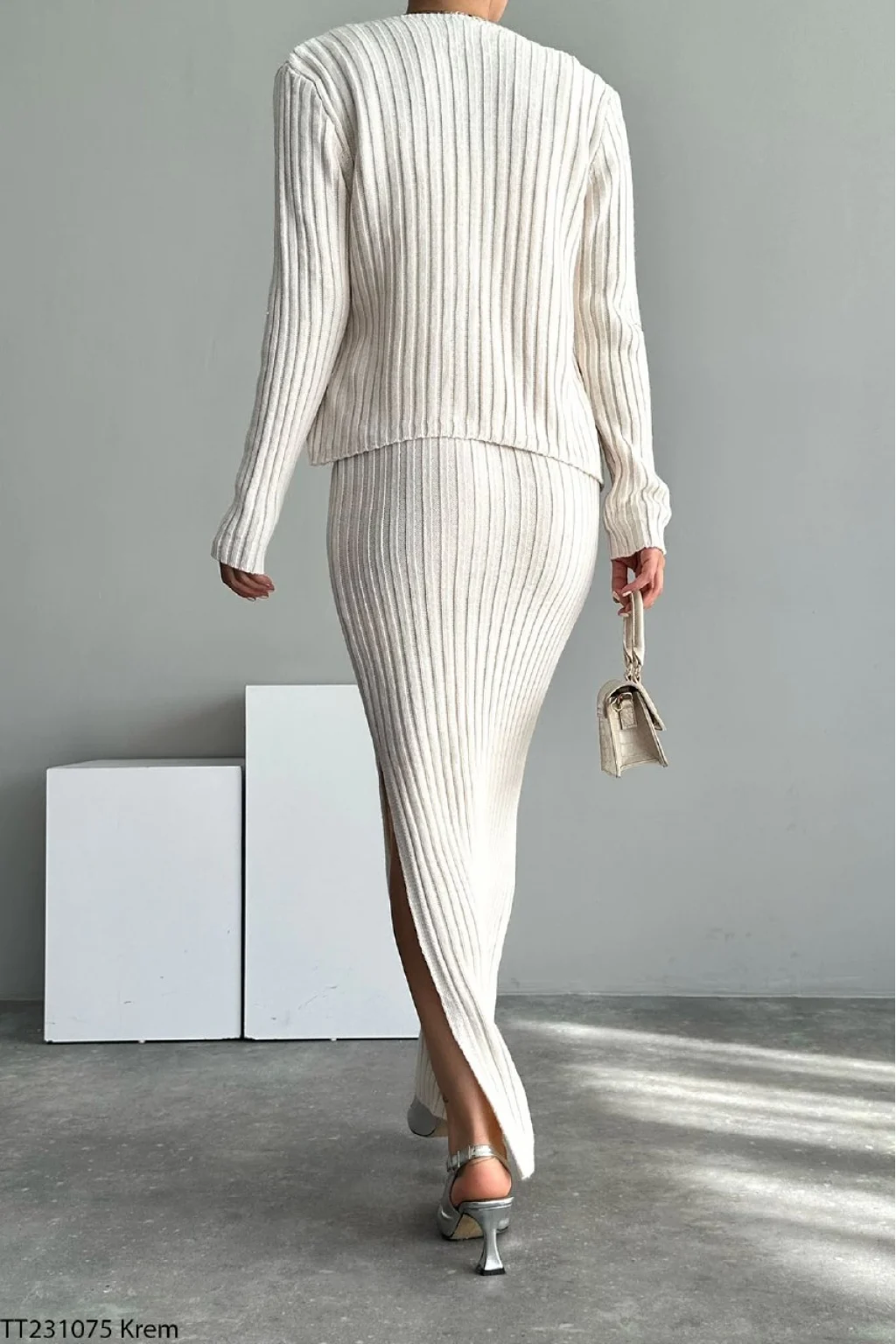 FİTİLLİ KREM TRİKO TAKIM ETEK HIRKA CROP