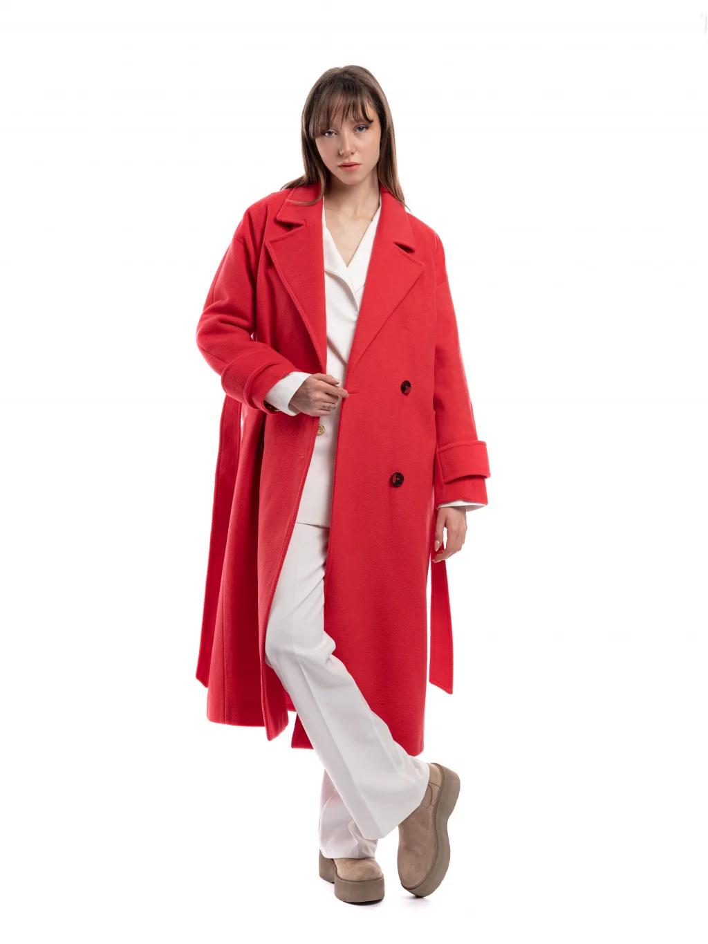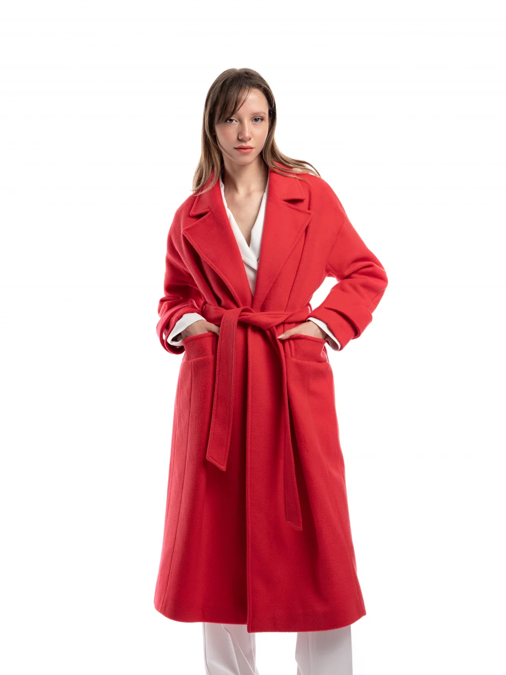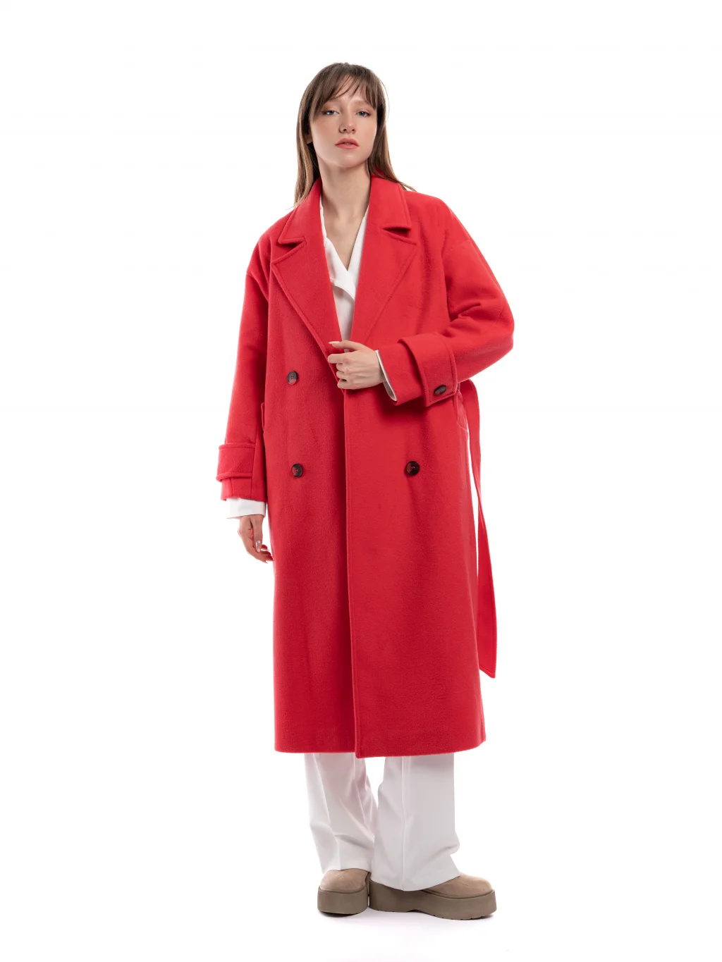 Düğmeli Kemerli yumuşacık dokulu kaban.