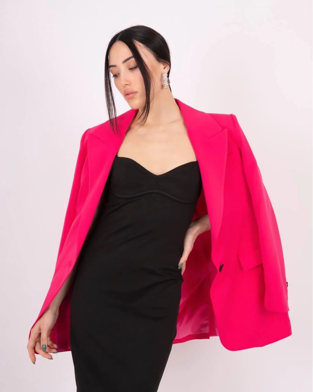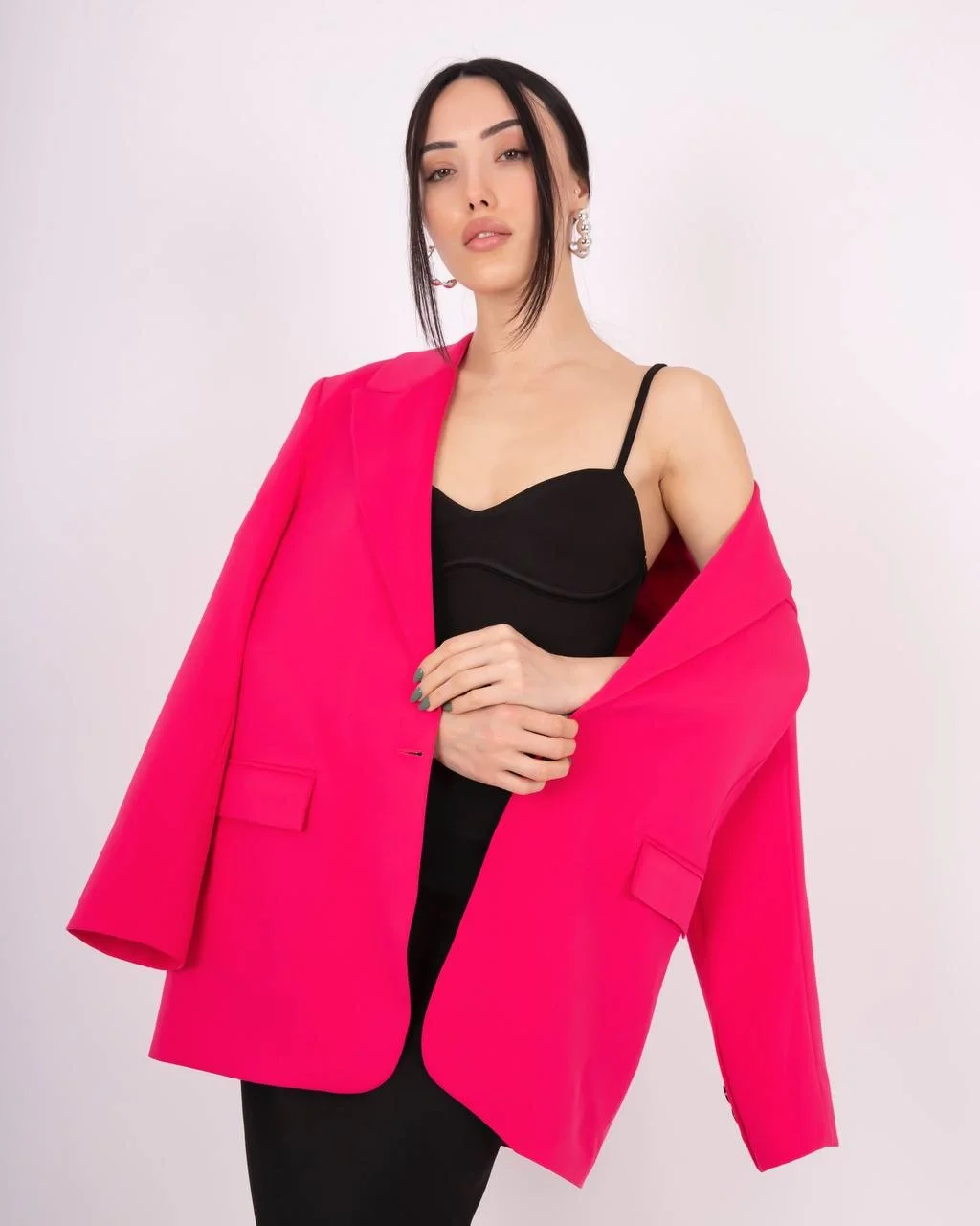 Fuşya Tek Düğme Astarlı Blazer Ceket