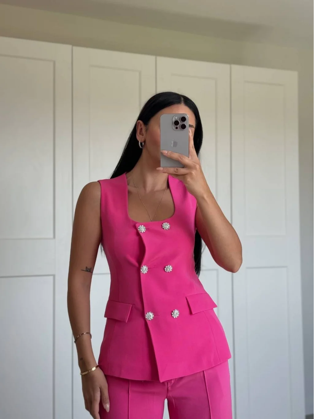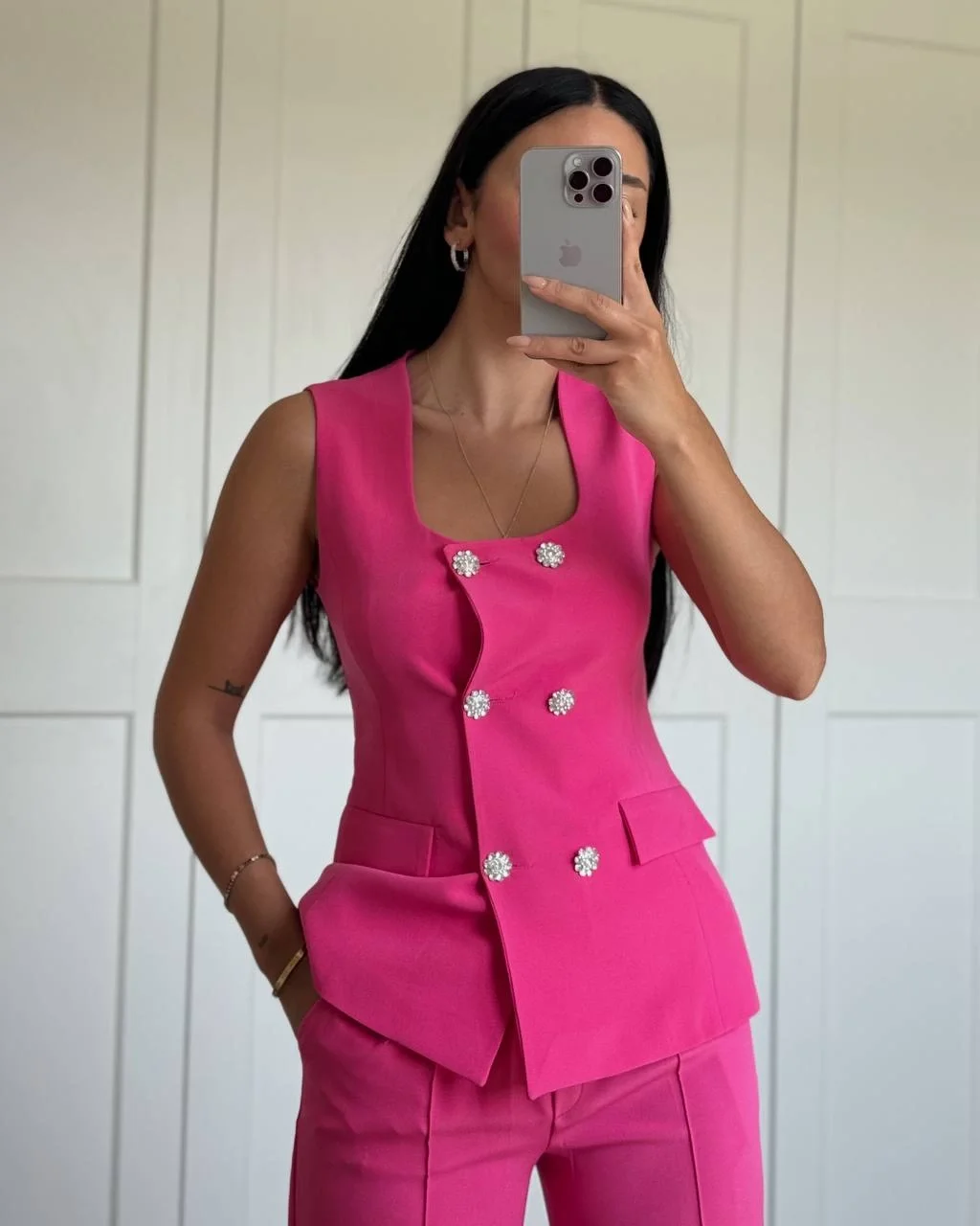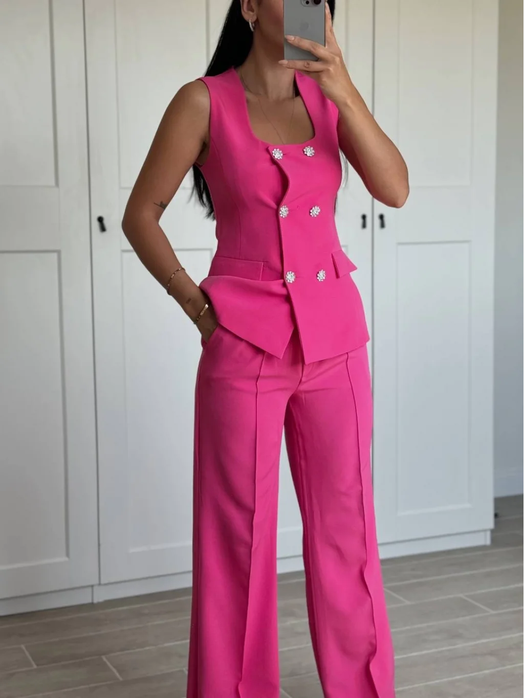 GOLD DÜĞME FUŞYA YELEK PANTOLON TAKIM
