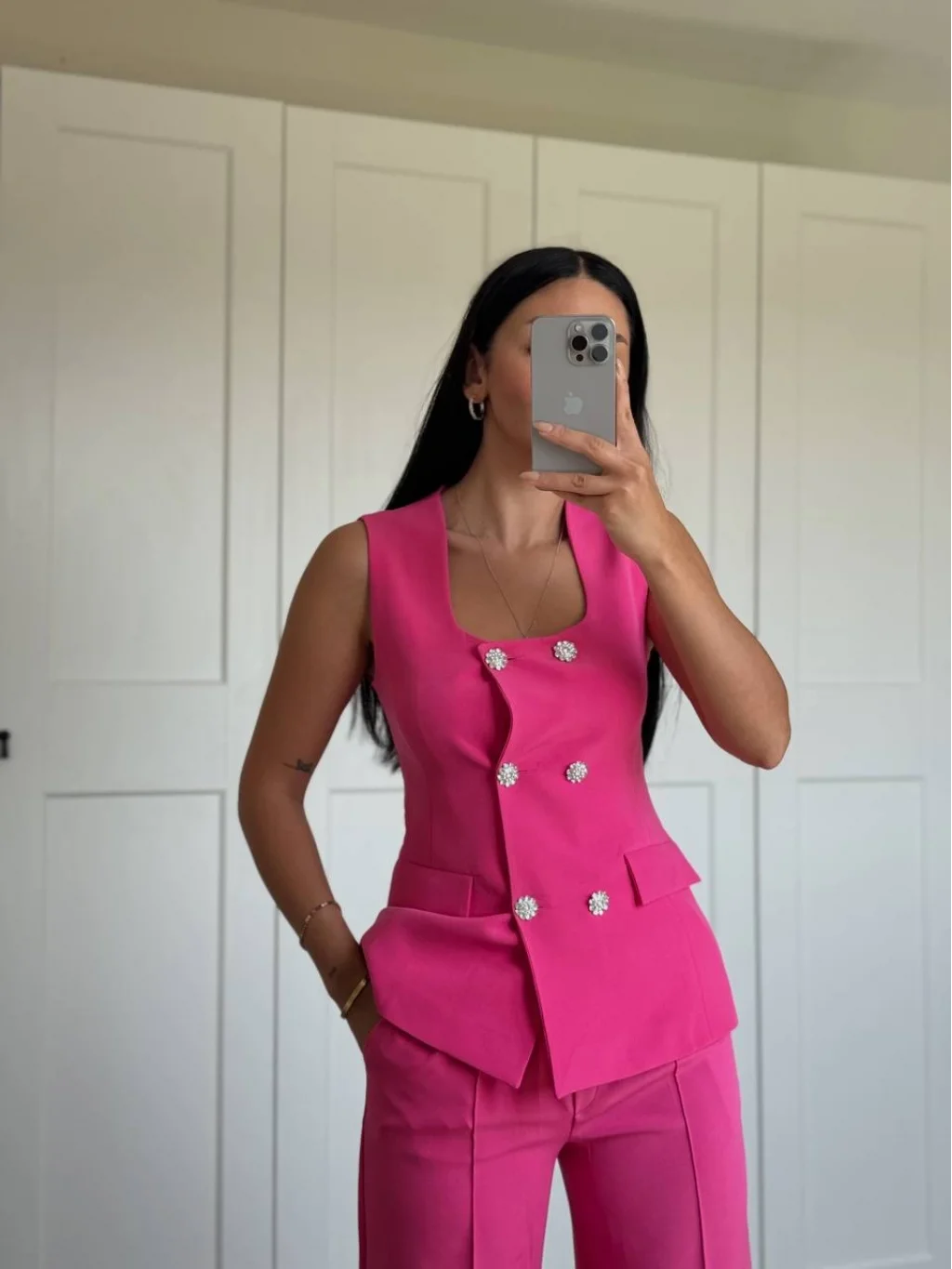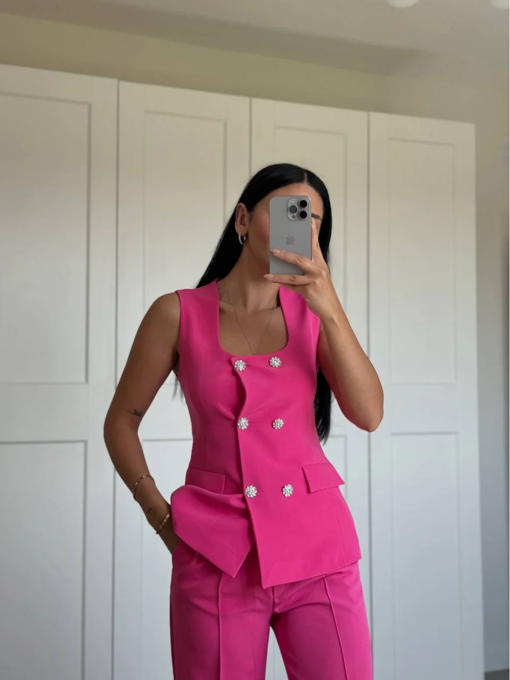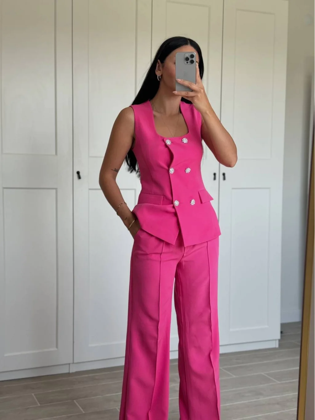 GOLD DÜĞME FUŞYA YELEK PANTOLON TAKIM