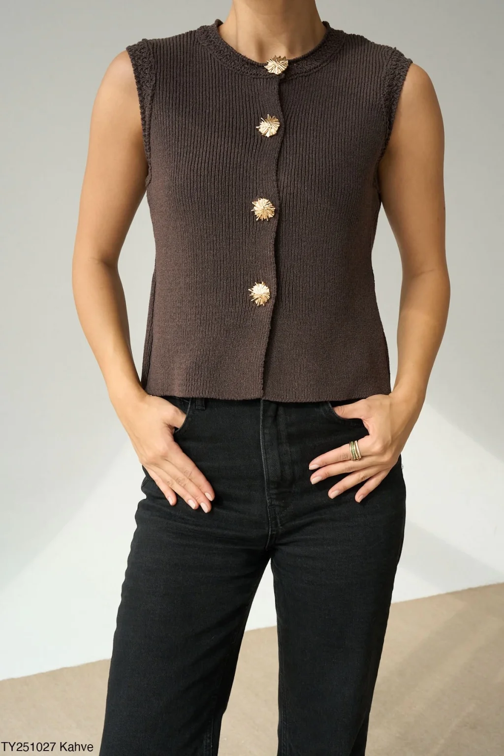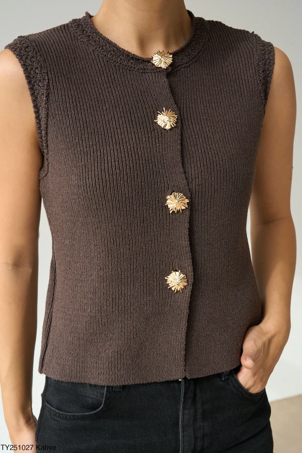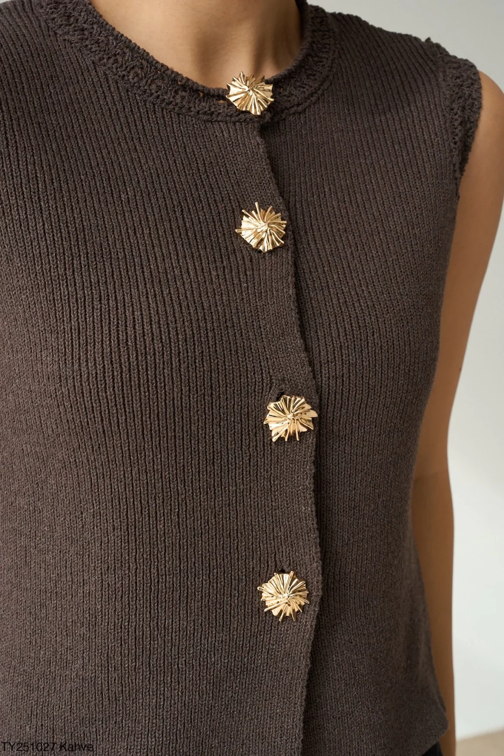 • MYRA Gold Düğme Kahverengi Yelek, şıklığı ve rahatlığı bir arada sunar.
