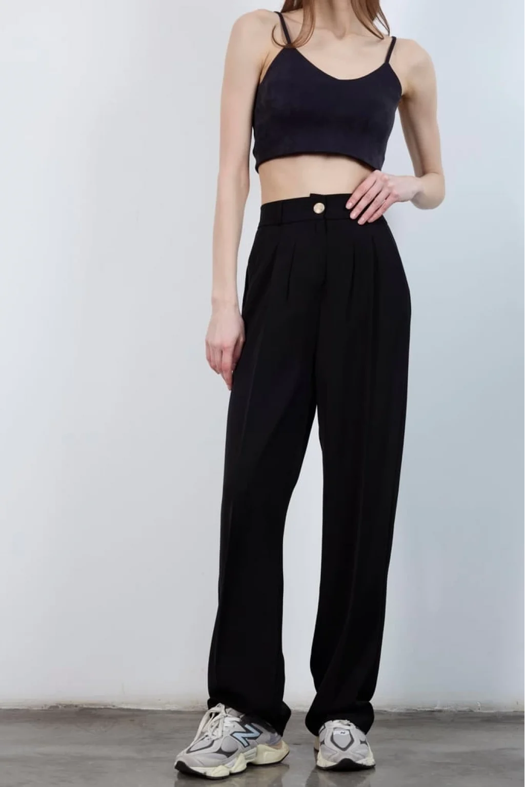Gold Düğme Pileli Palazzo Pantolon-Siyah