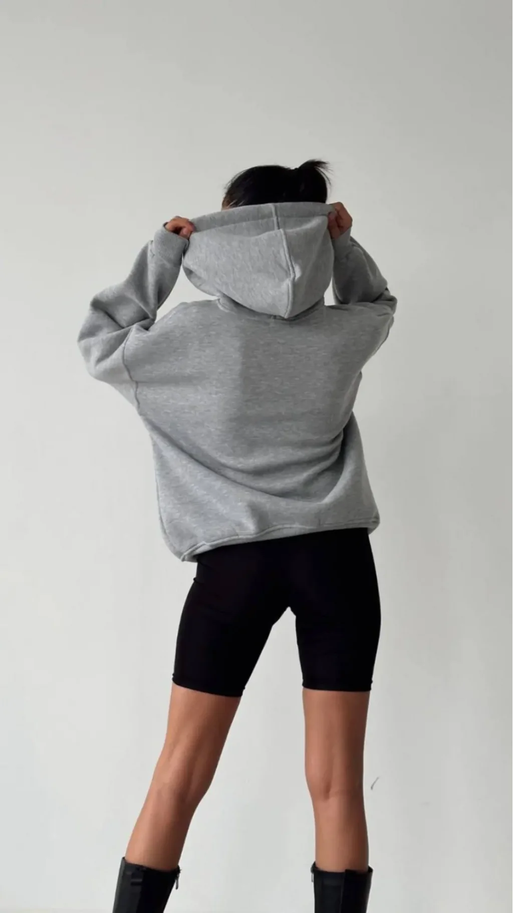 QUZU GRİ ŞARDONLU PAMUKLU KAPUŞONLU SWEATSHİRT