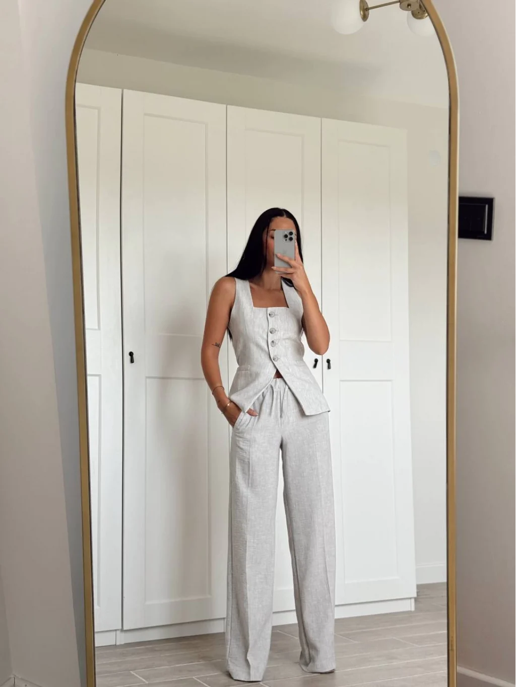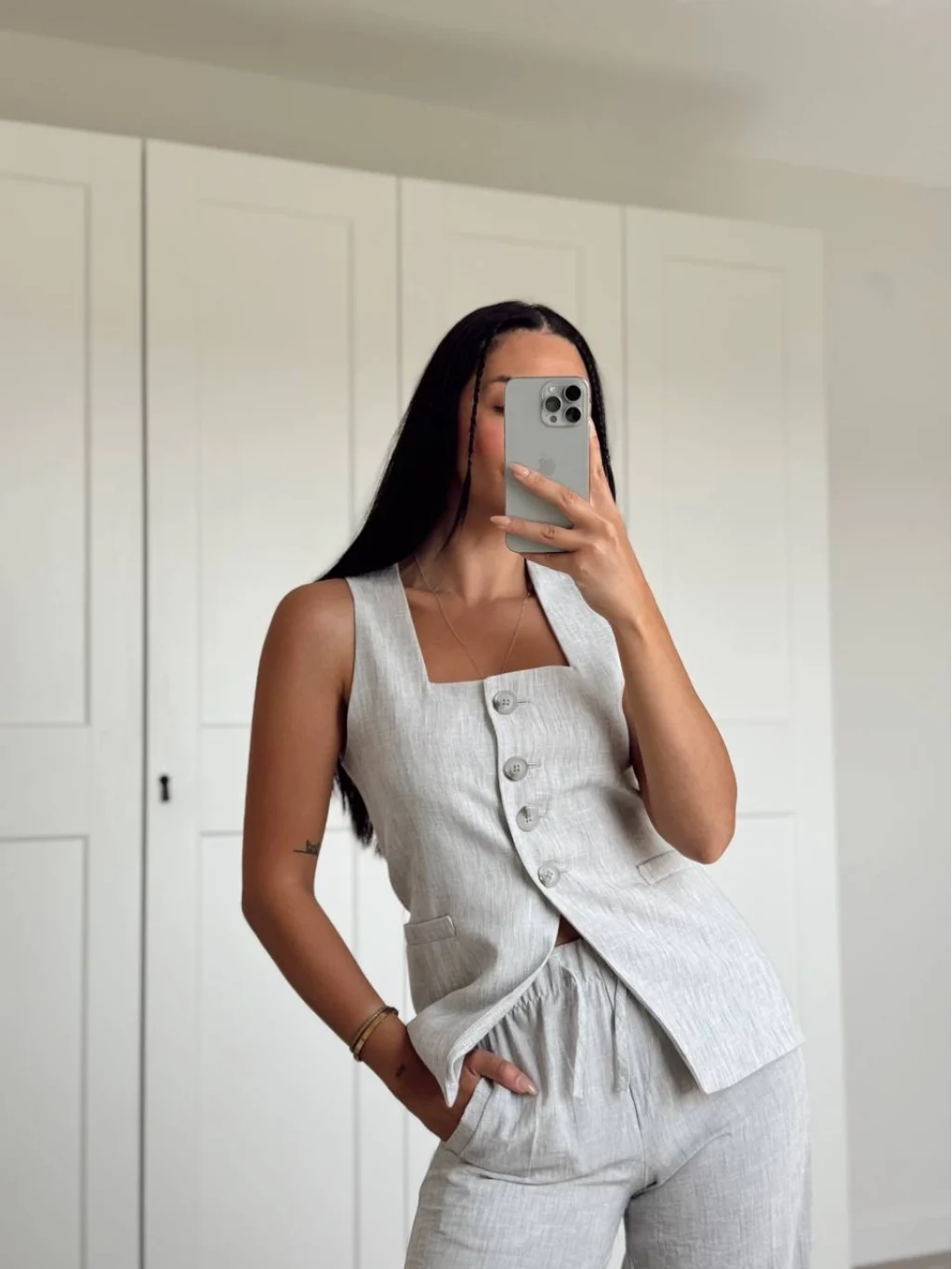 • GRİ KETEN YELEK PANTOLON TAKIM