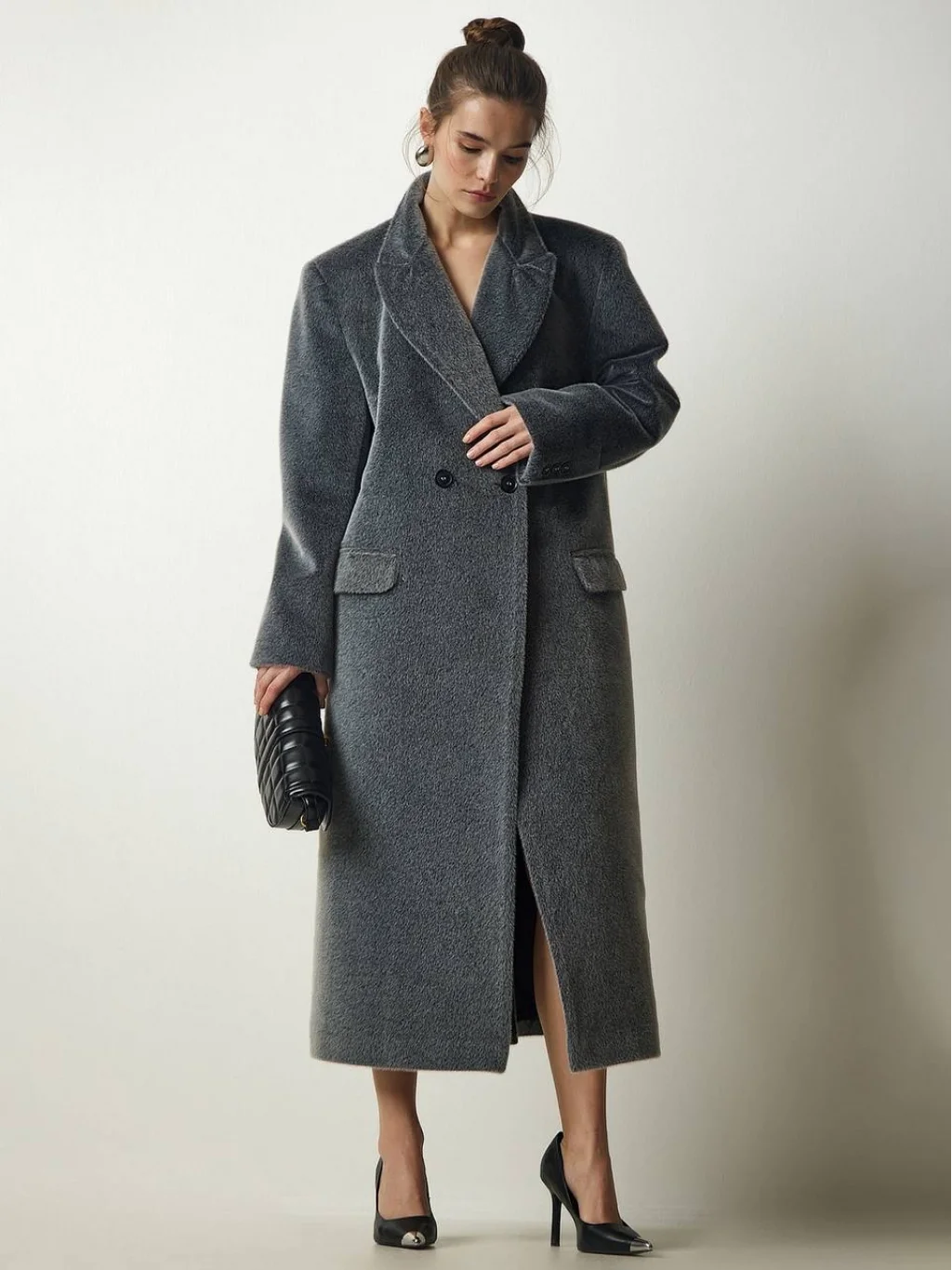 UZUN KOLLU, KATLI YAKA, ÖNÜ DÜĞMELİ KAPAK CEPLİ, İÇİ ASTARLI, UZUN KABAN
