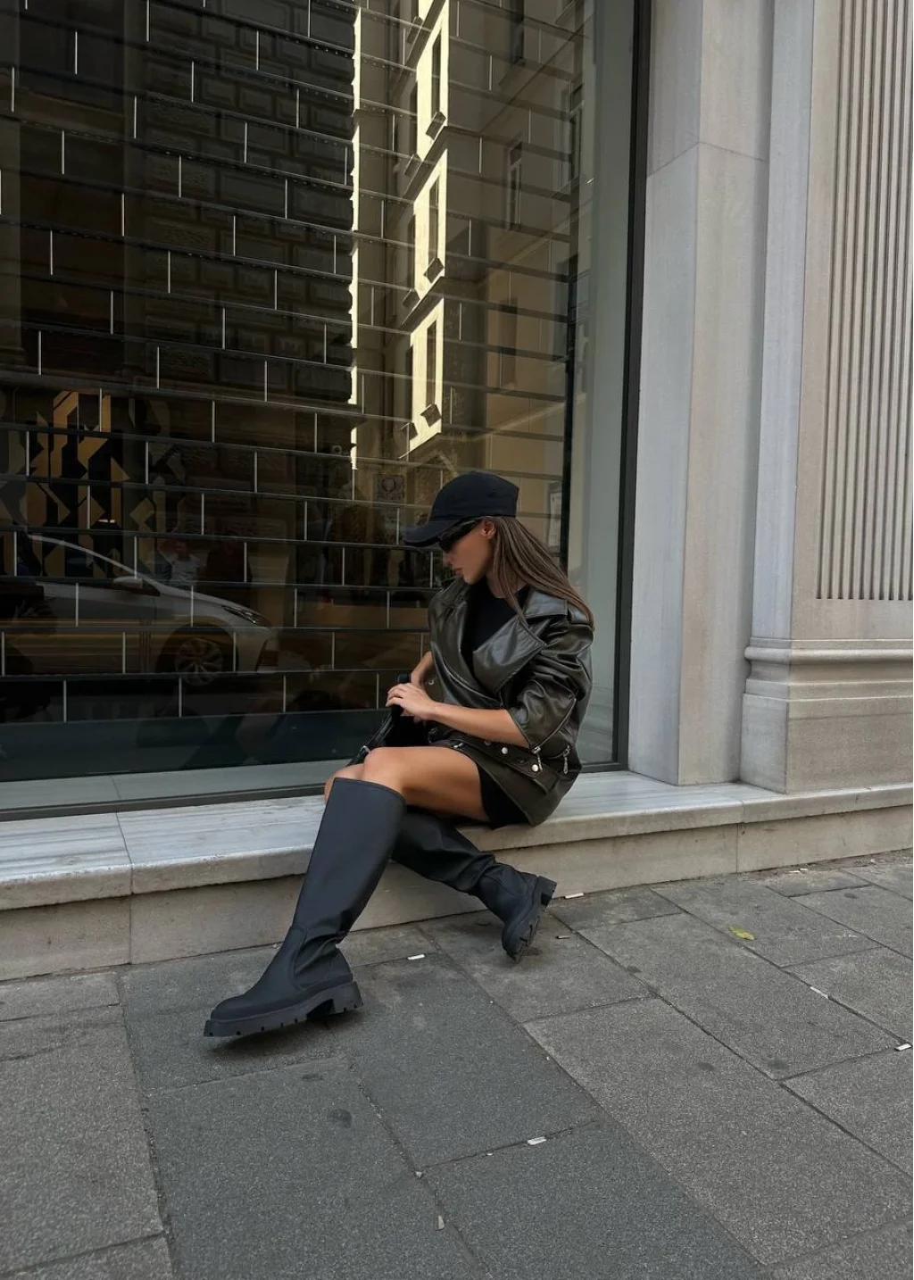 HAKİ KOL FERMUAR DETAY DERİ CEKET