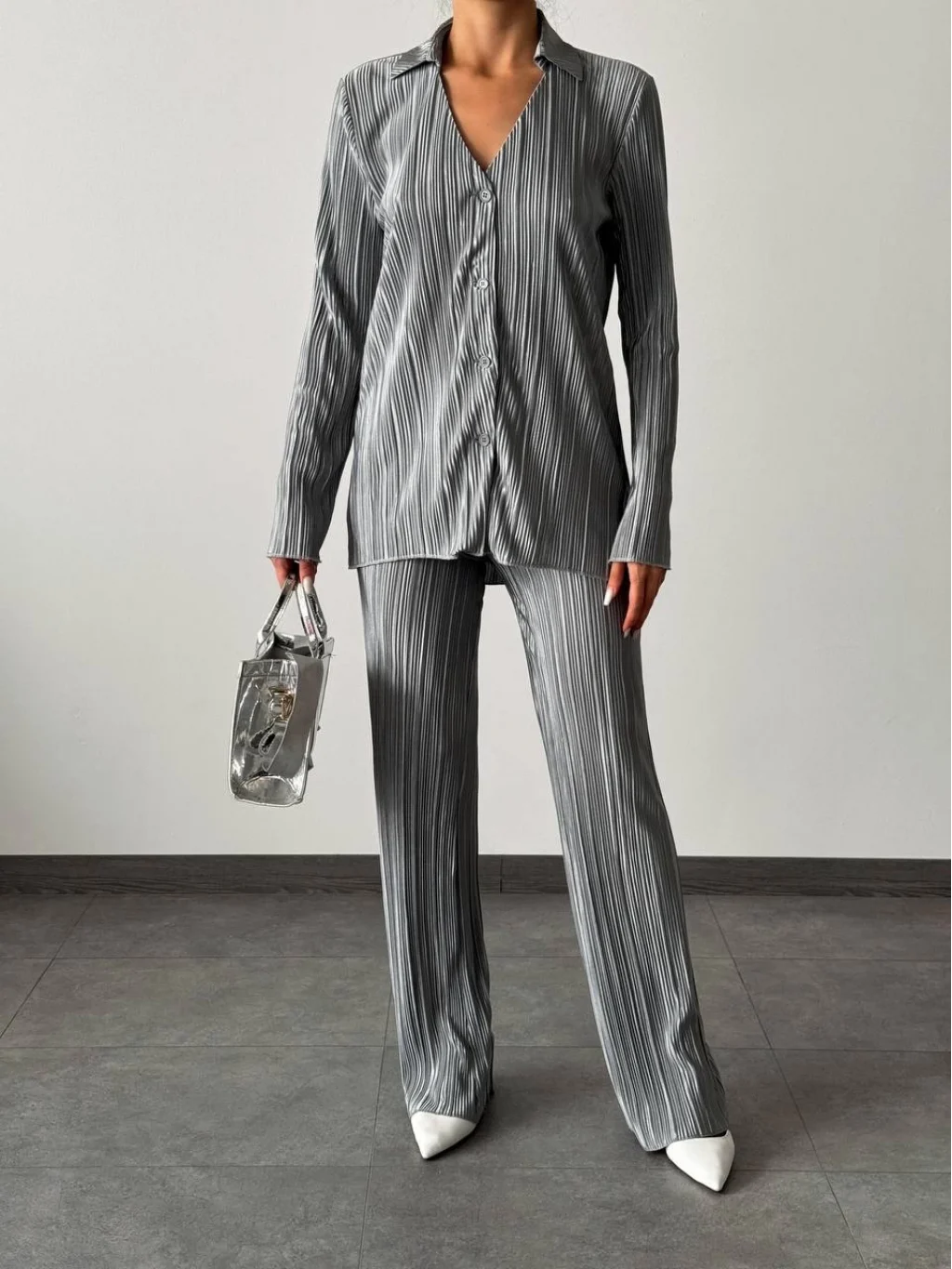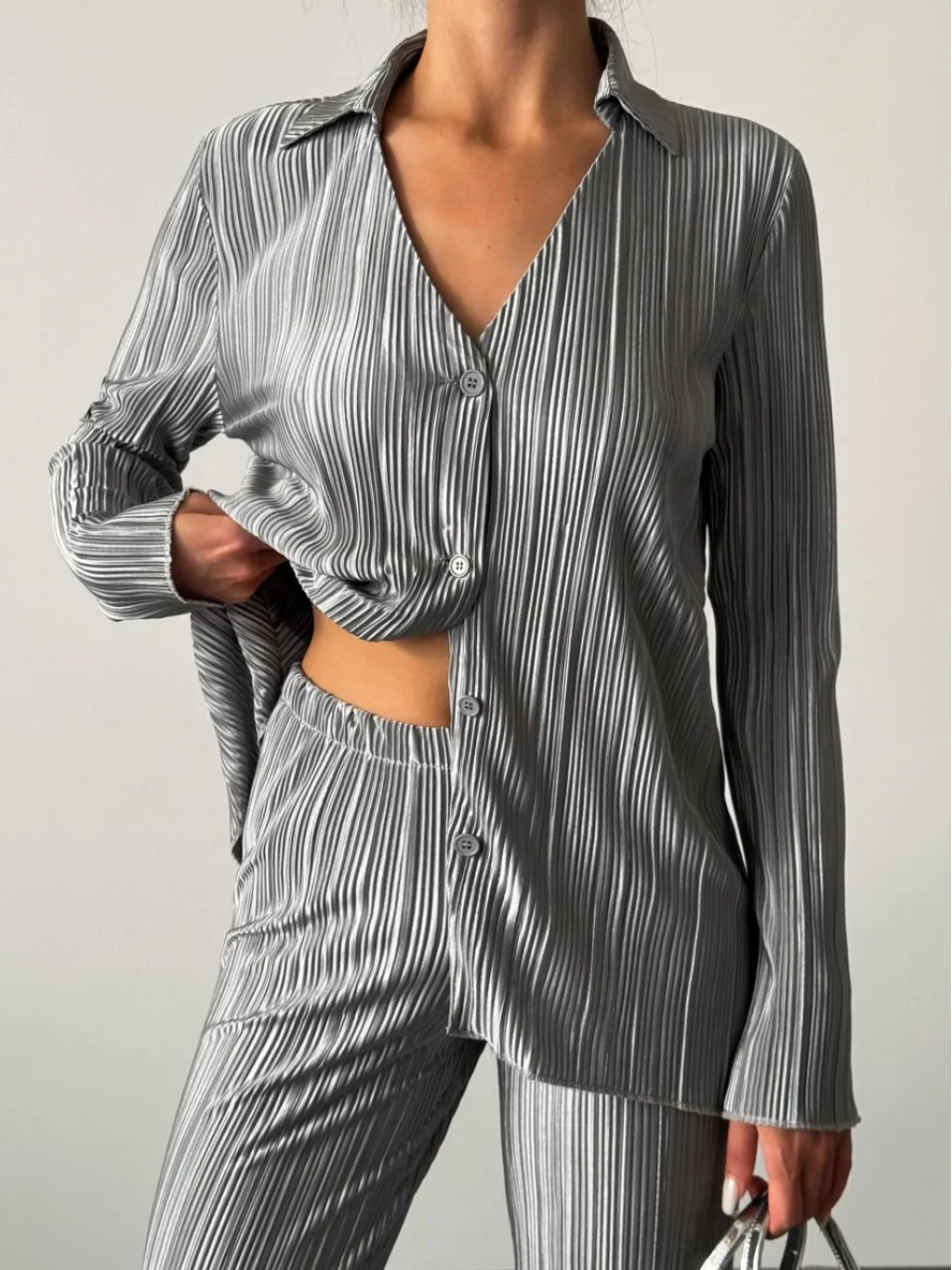 Hayal Pilise Gömlek Pantolon Takım Gri