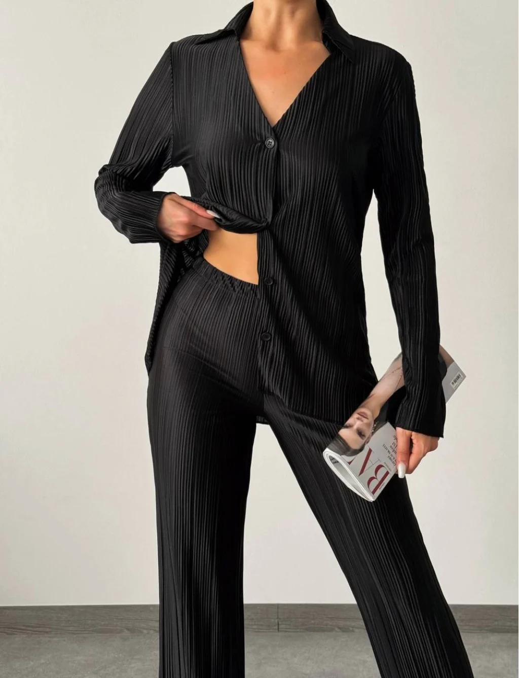 Hayal Pilise Gömlek Pantolon Takım Siyah