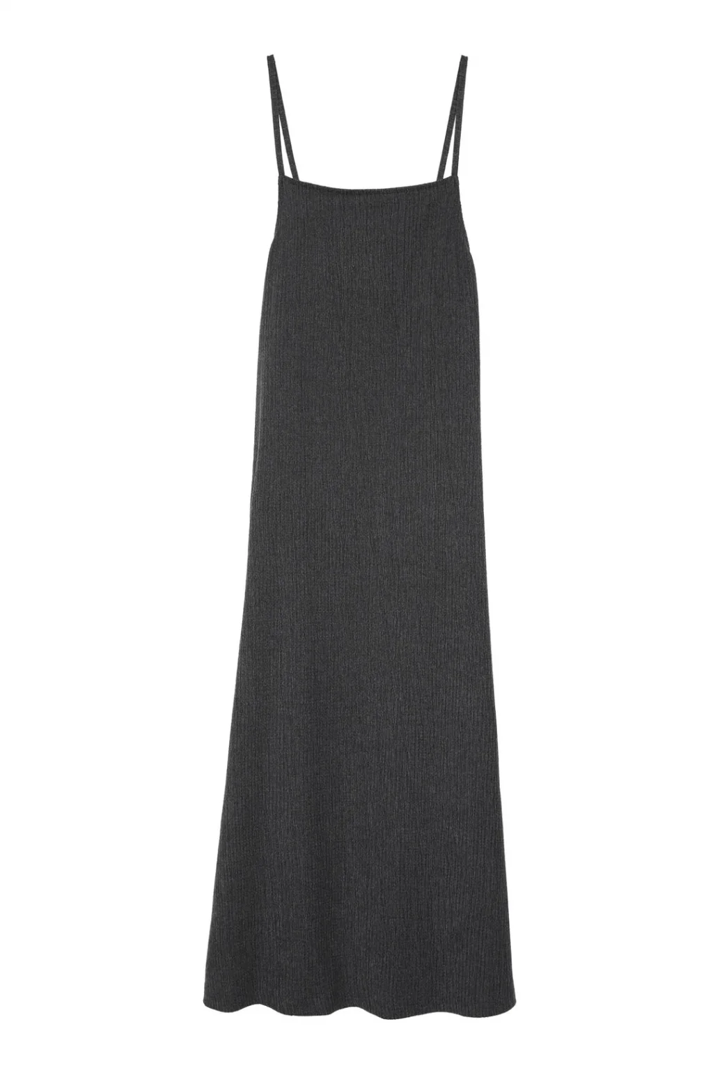 İNCE ASKILI ANTRASİT UZUN ELBİSE