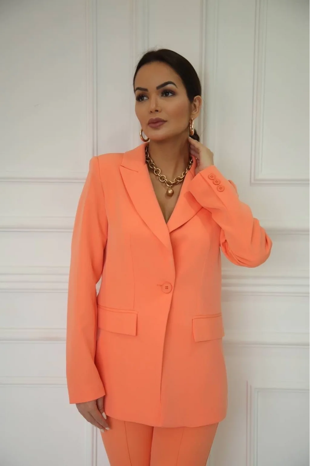 YAKASI KATLI, TEK DÜĞMELİ, UZUN KOLLU, SÜS CEPLİ CEKET
