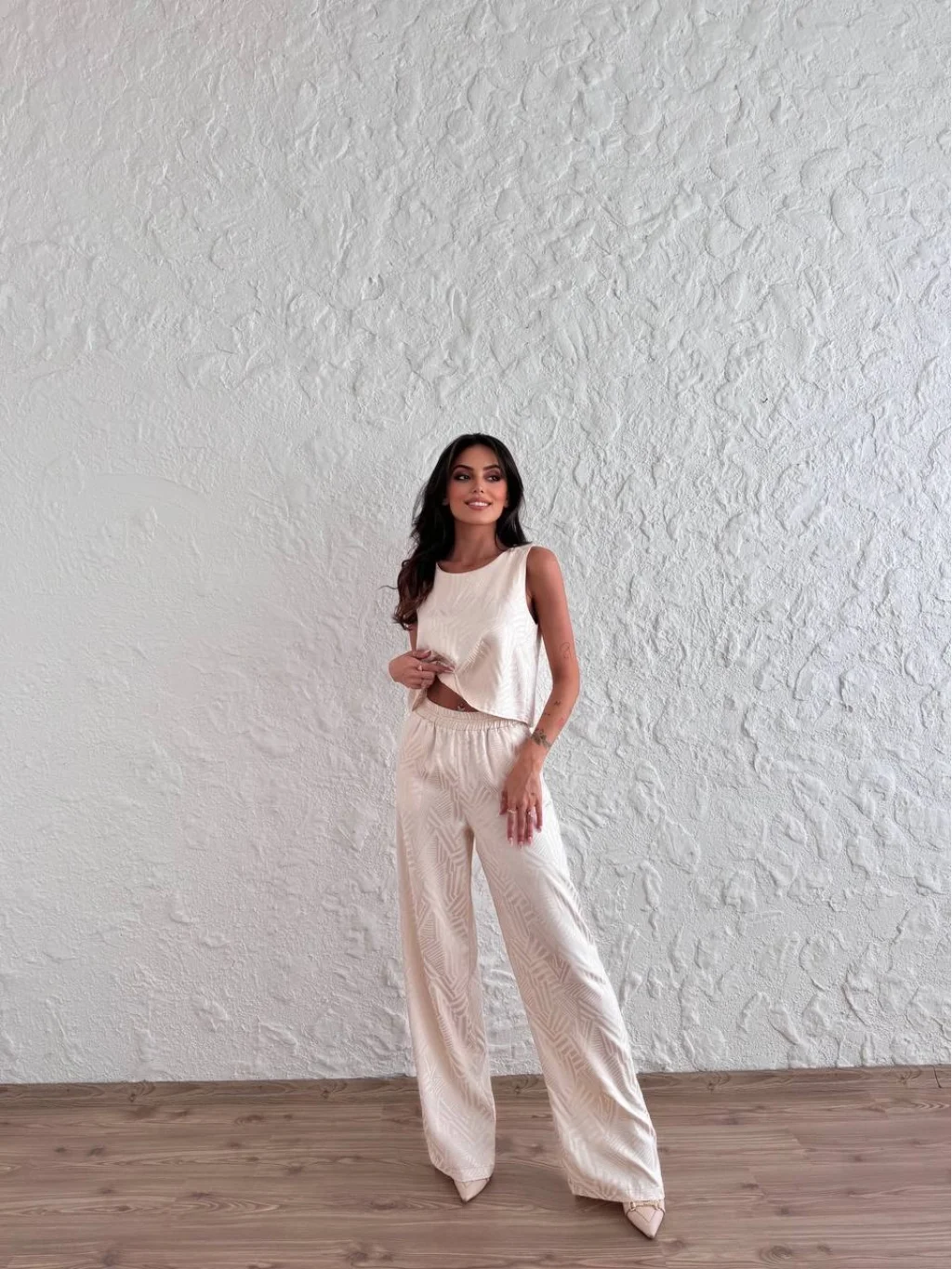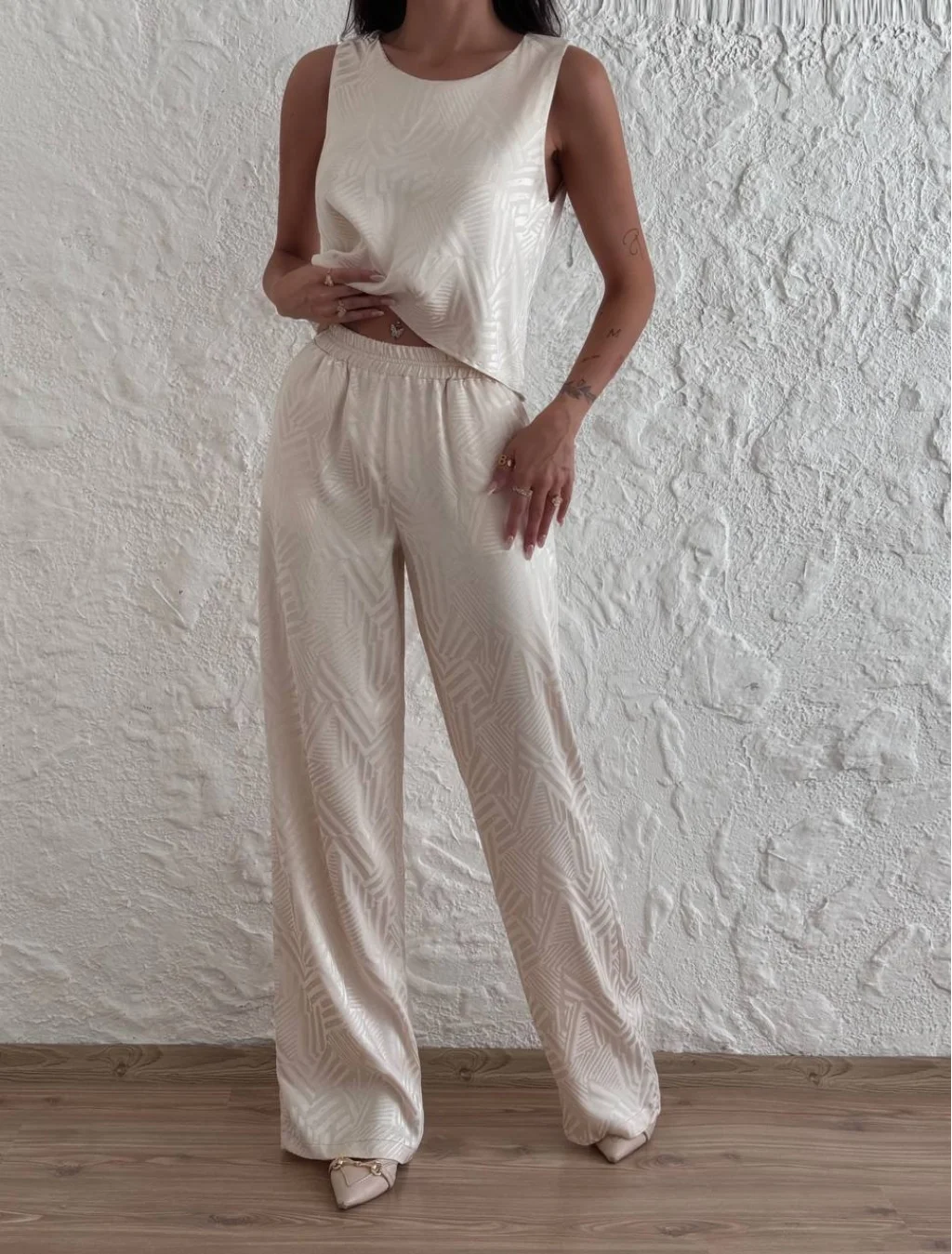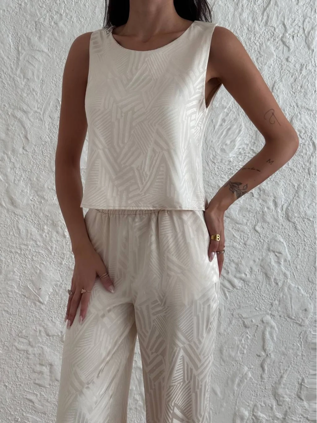 MYRA Jakarlı Taş Renk Saten Takım, şıklığı ve rahatlığı bir arada sunar. Eşsiz tasarımı ile öne çıkan bu takım, her tarza kolaylıkla uyum sağlar.