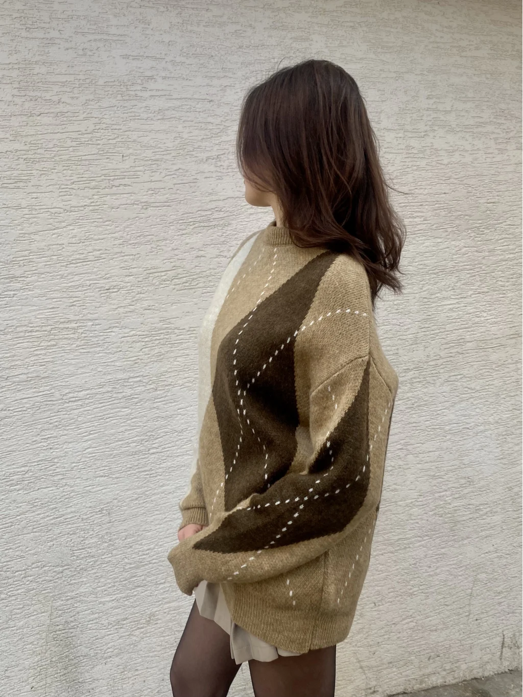 KAHVERENGİ TABA BAKLAVA DESENLİ KAZAK
