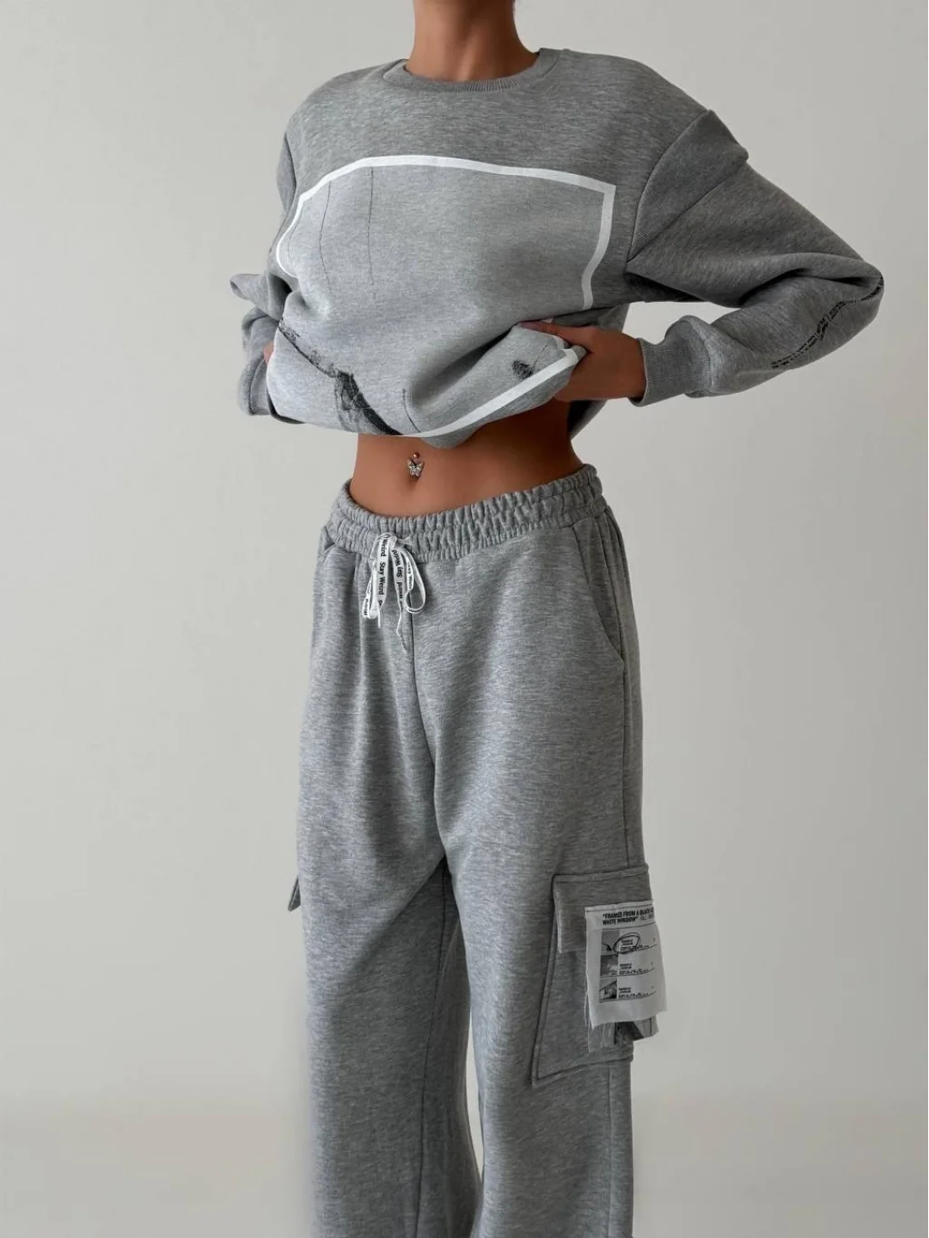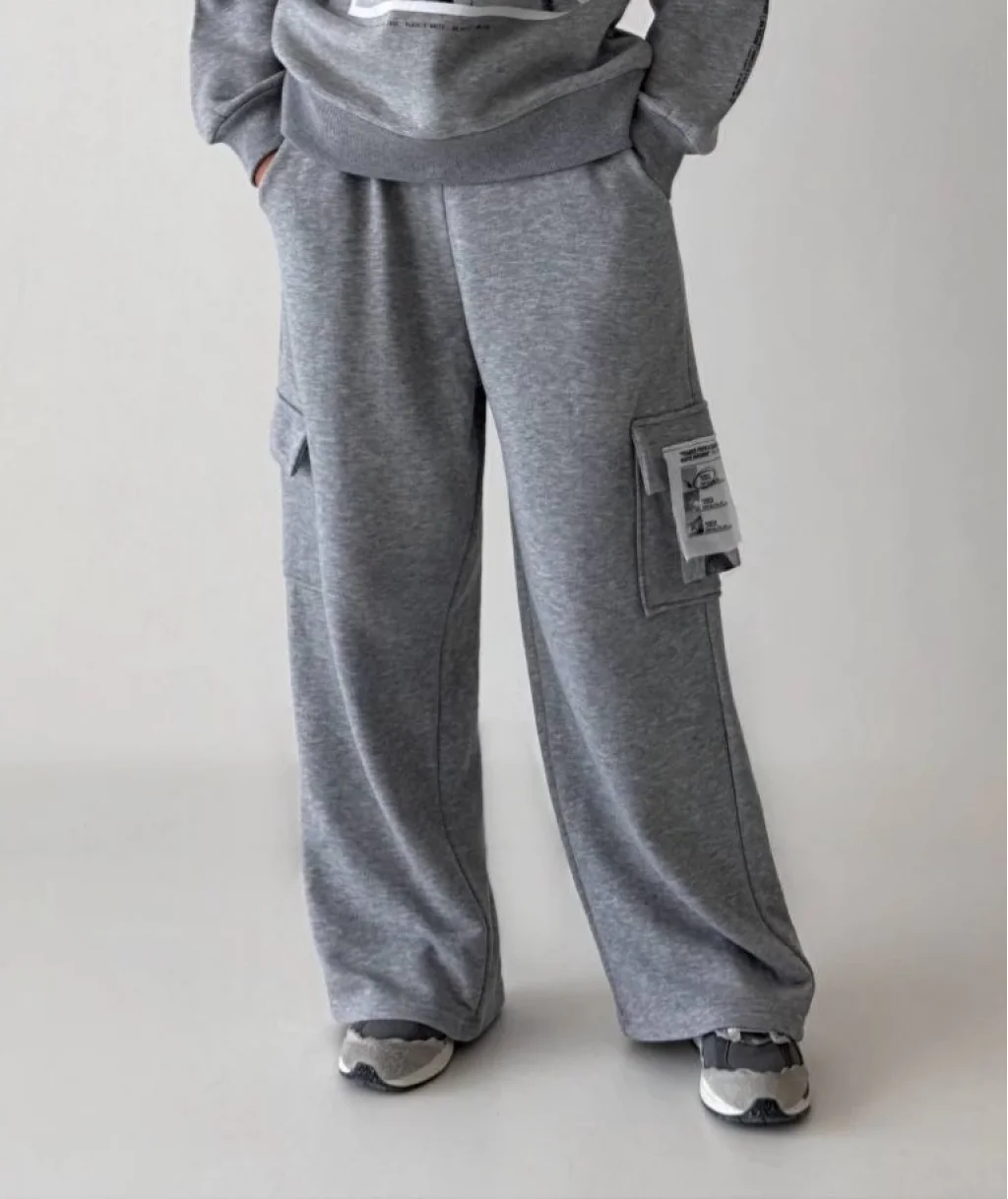 Kargo Cepli Beli Lastikli Eşofman Alt Gri
