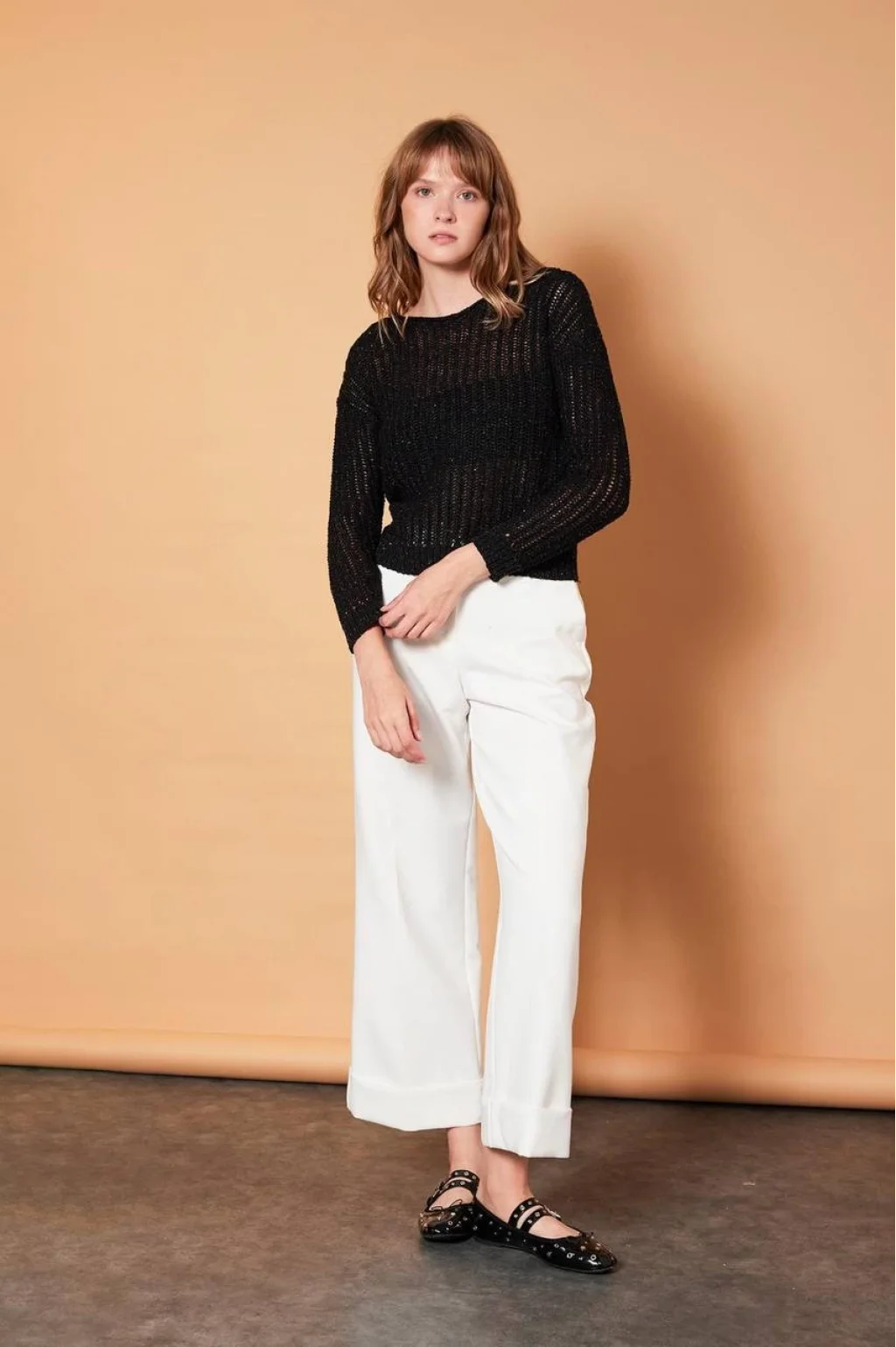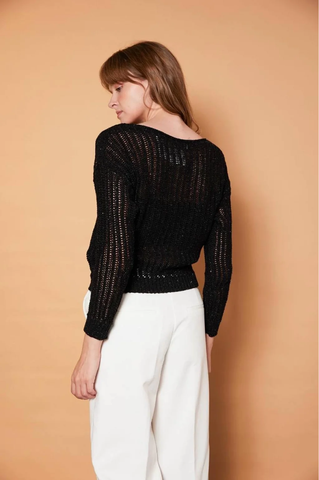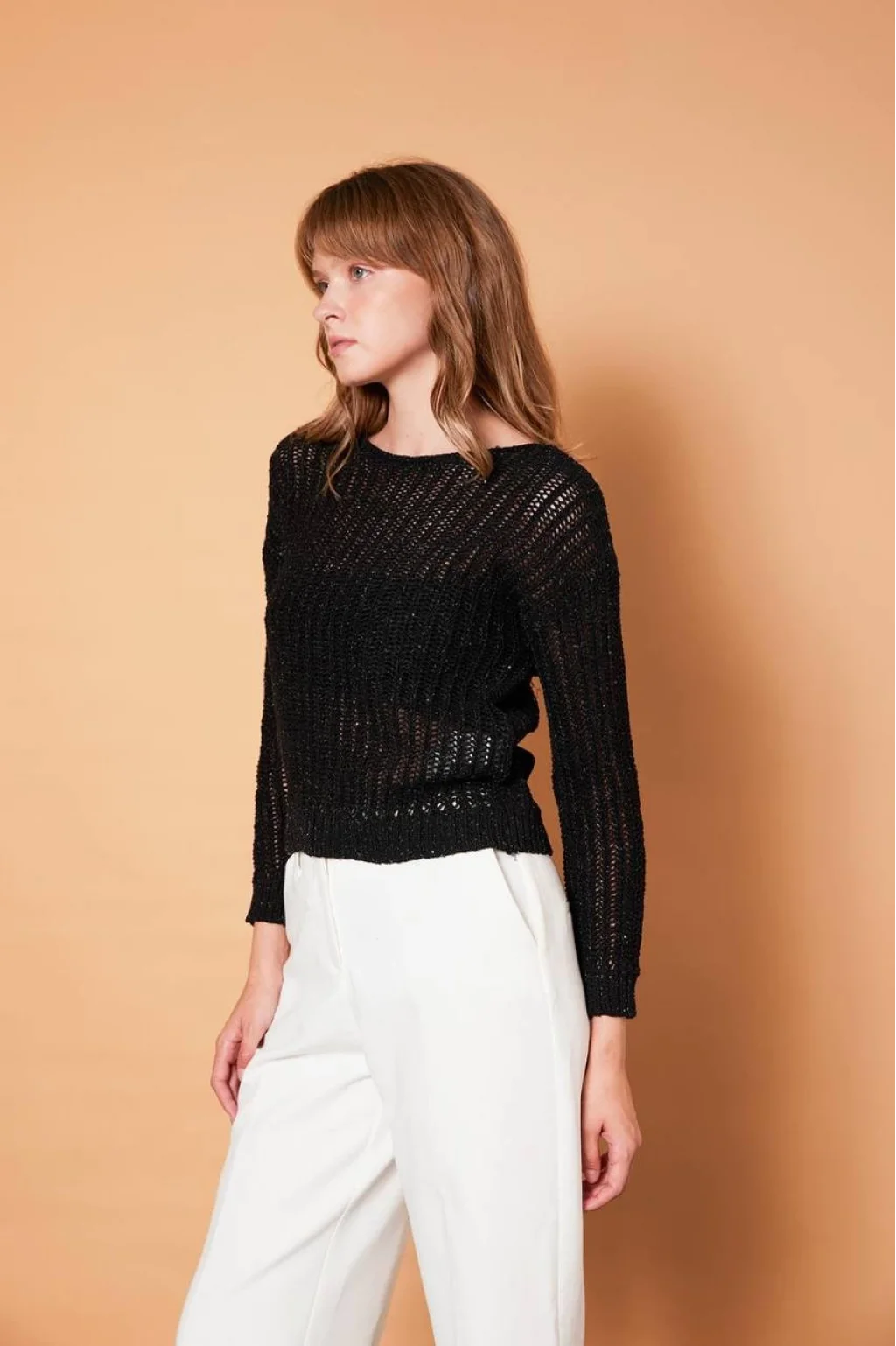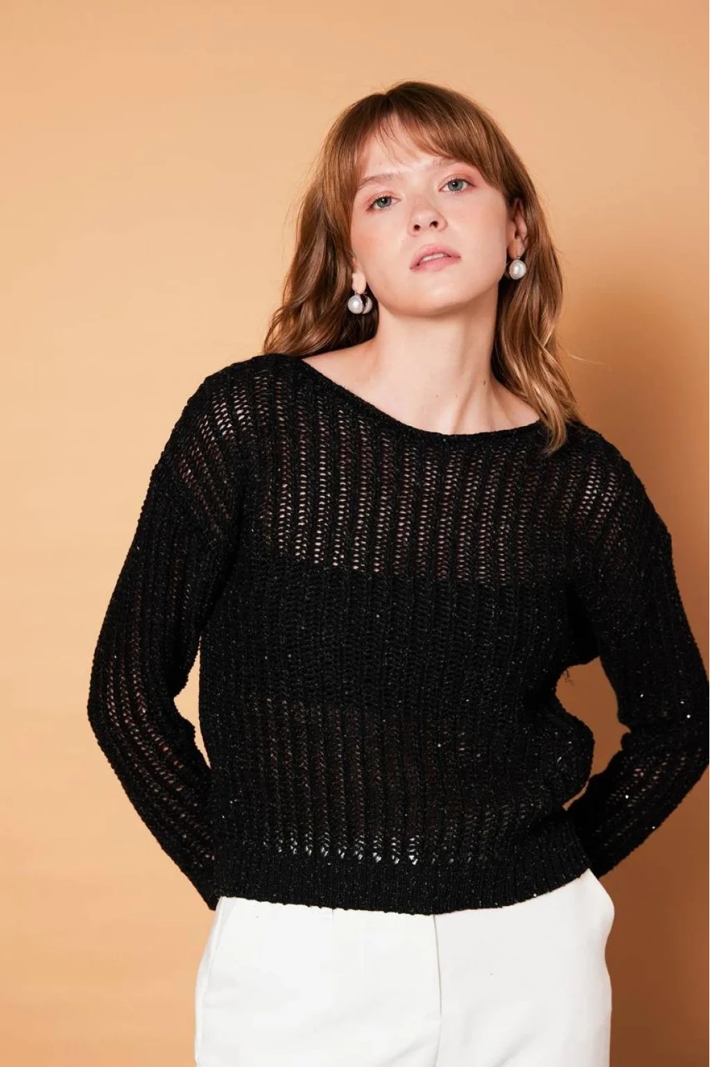 KAYIK YAKA PULLU SİYAH TRİKO KAZAK