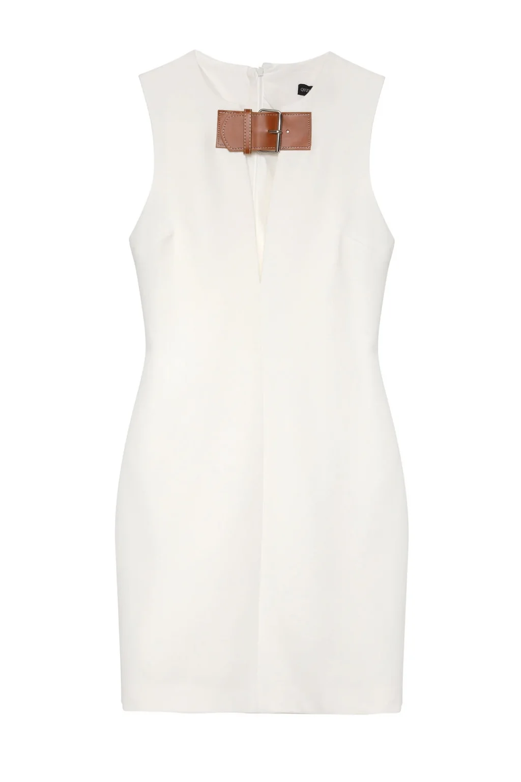 Kemer Aksesuarlı Dekolteli Mini Elbise Ekru