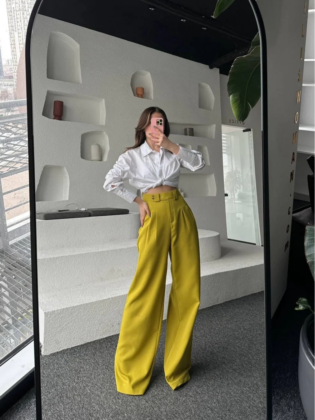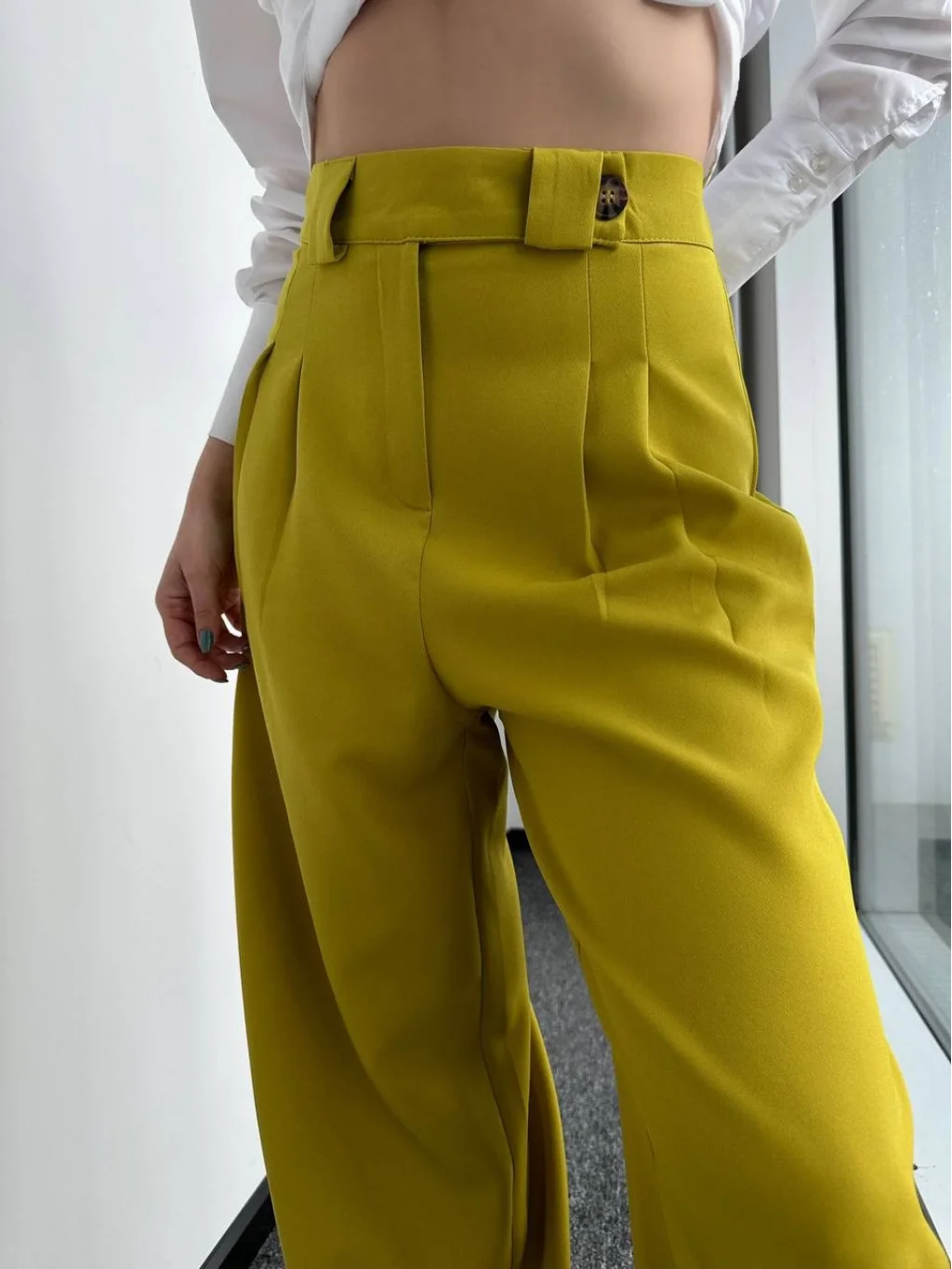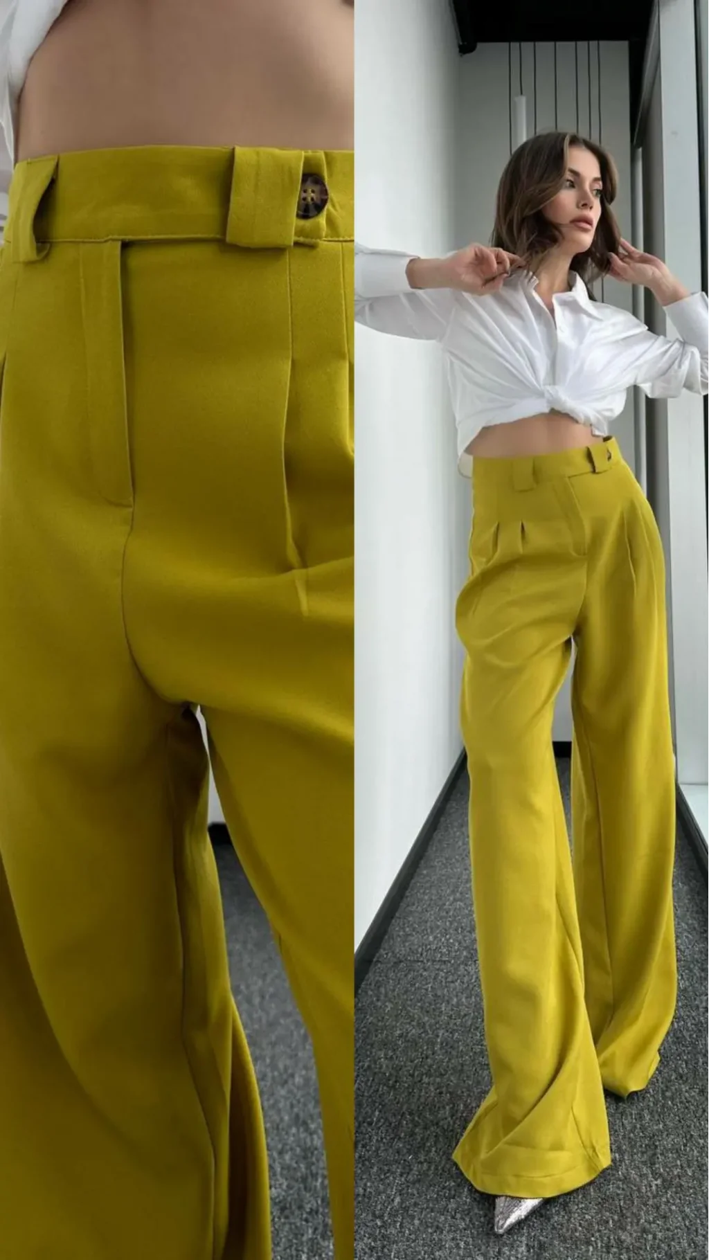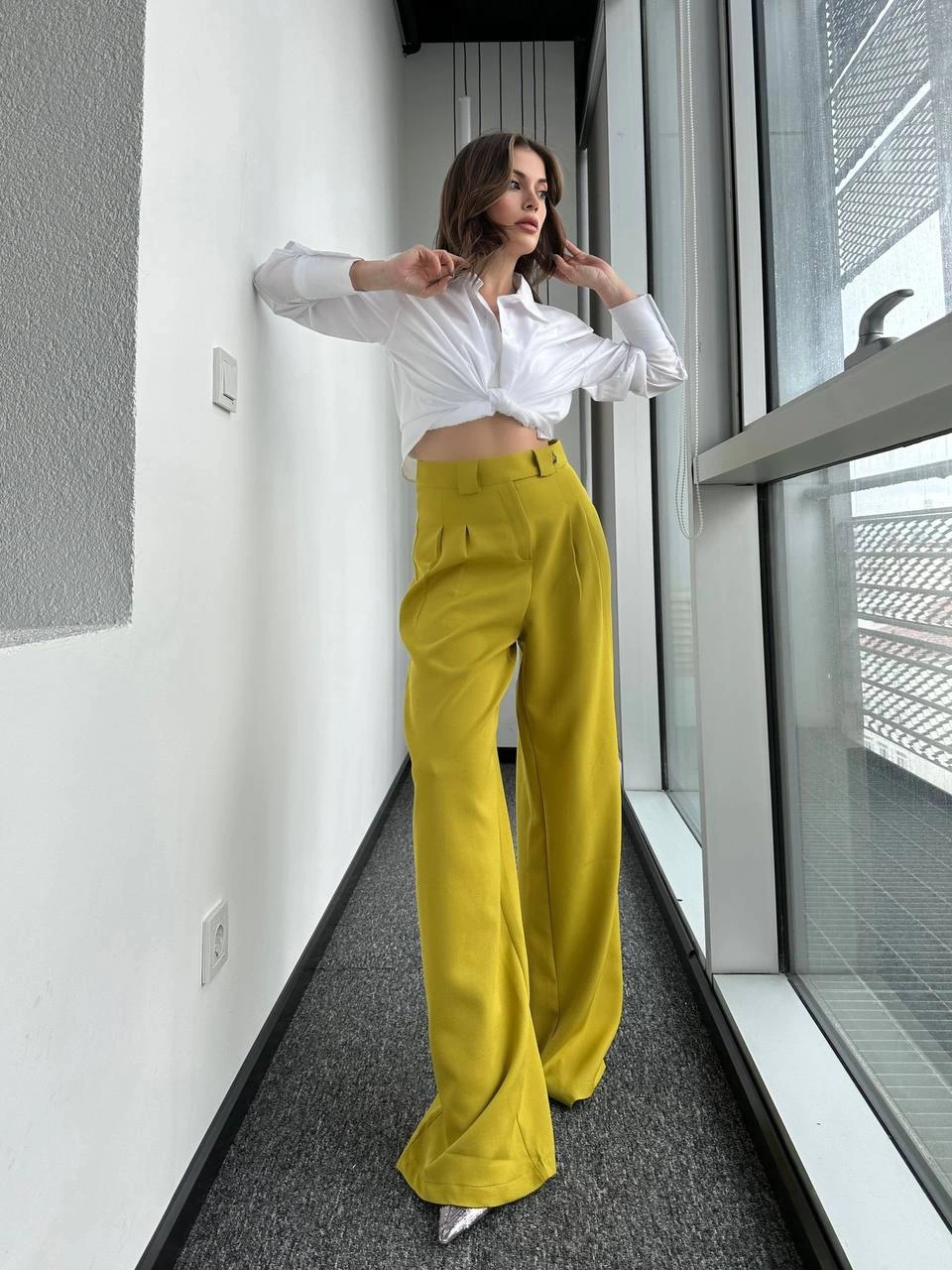 Kemer Aksesuarlı Hardal Palazzo Pantolon