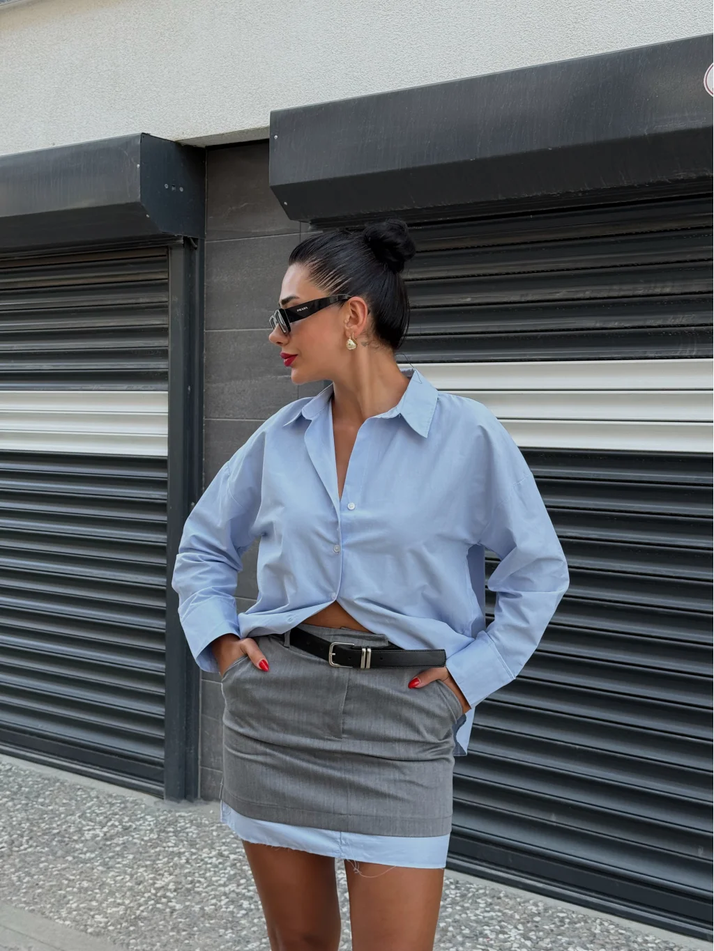 • MYRA'nın kemer aksesuarlı, kumaş garnili gri mini eteğiyle şıklığınızı tamamlayın!