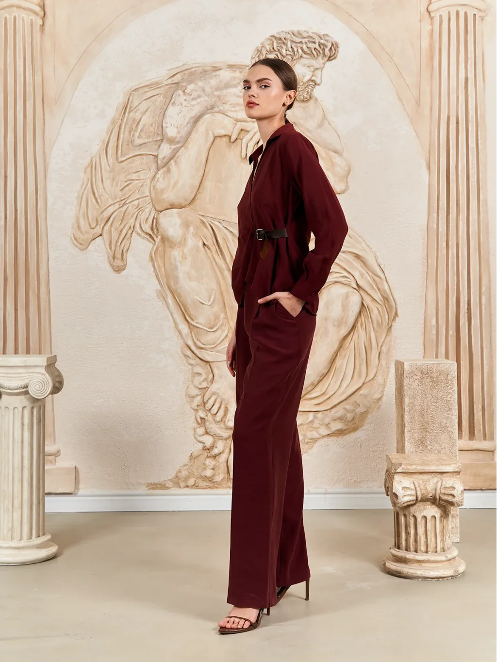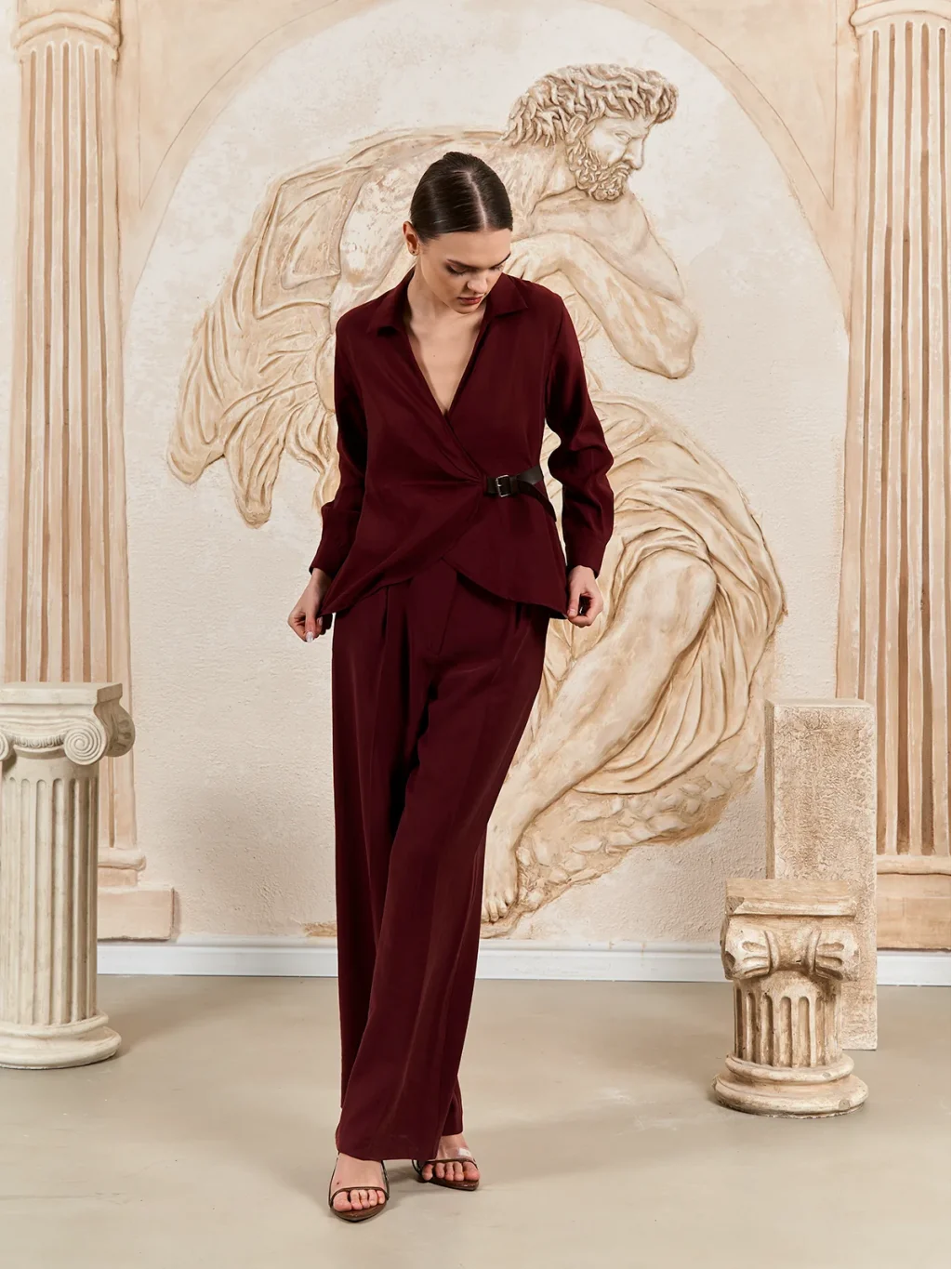 Kemer Detaylı Modal Kumaş Gömlek Bluz-Bordo