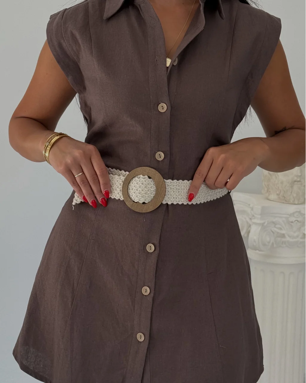 Kolsuz Kemerli Mini Kemerli Keten Elbise