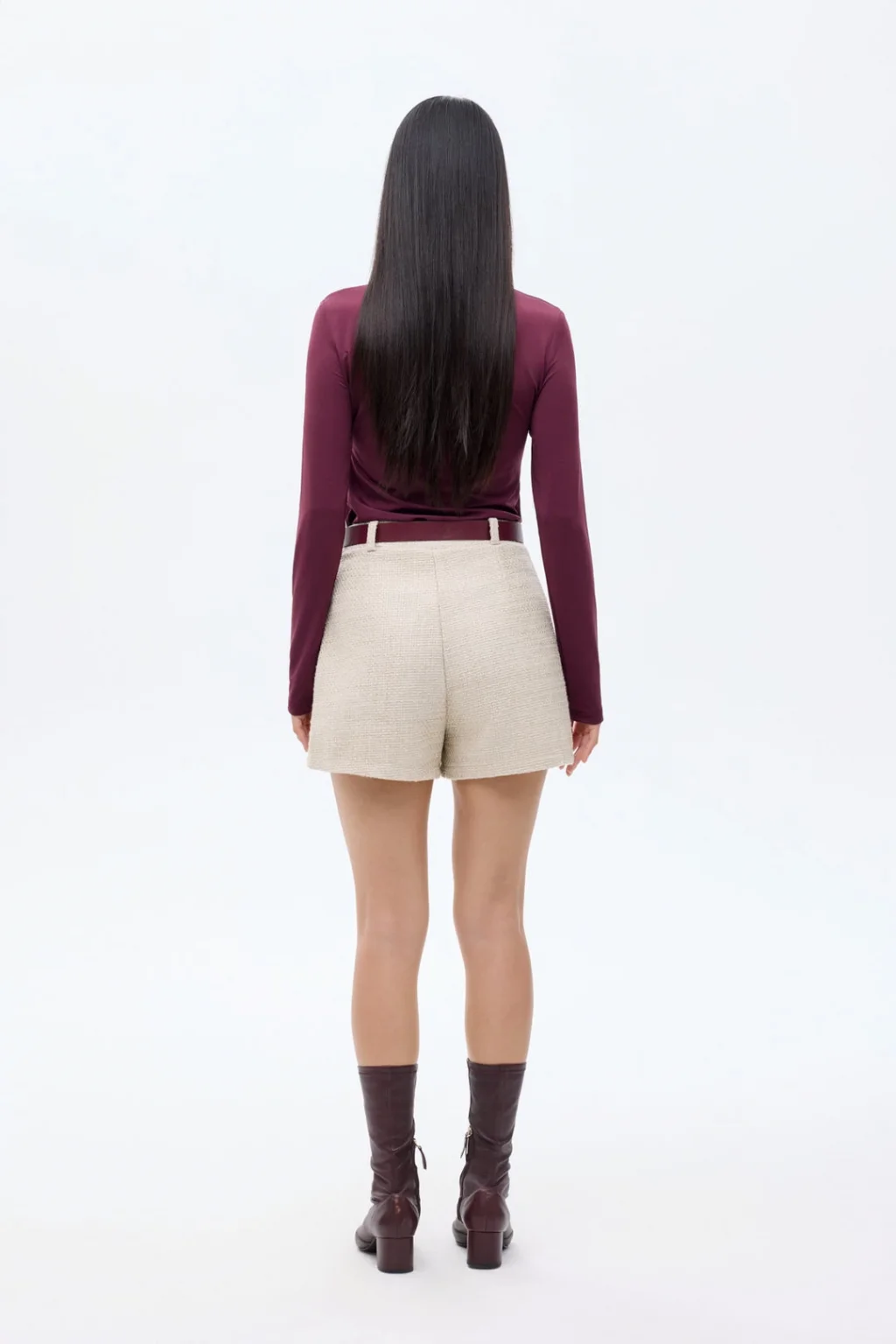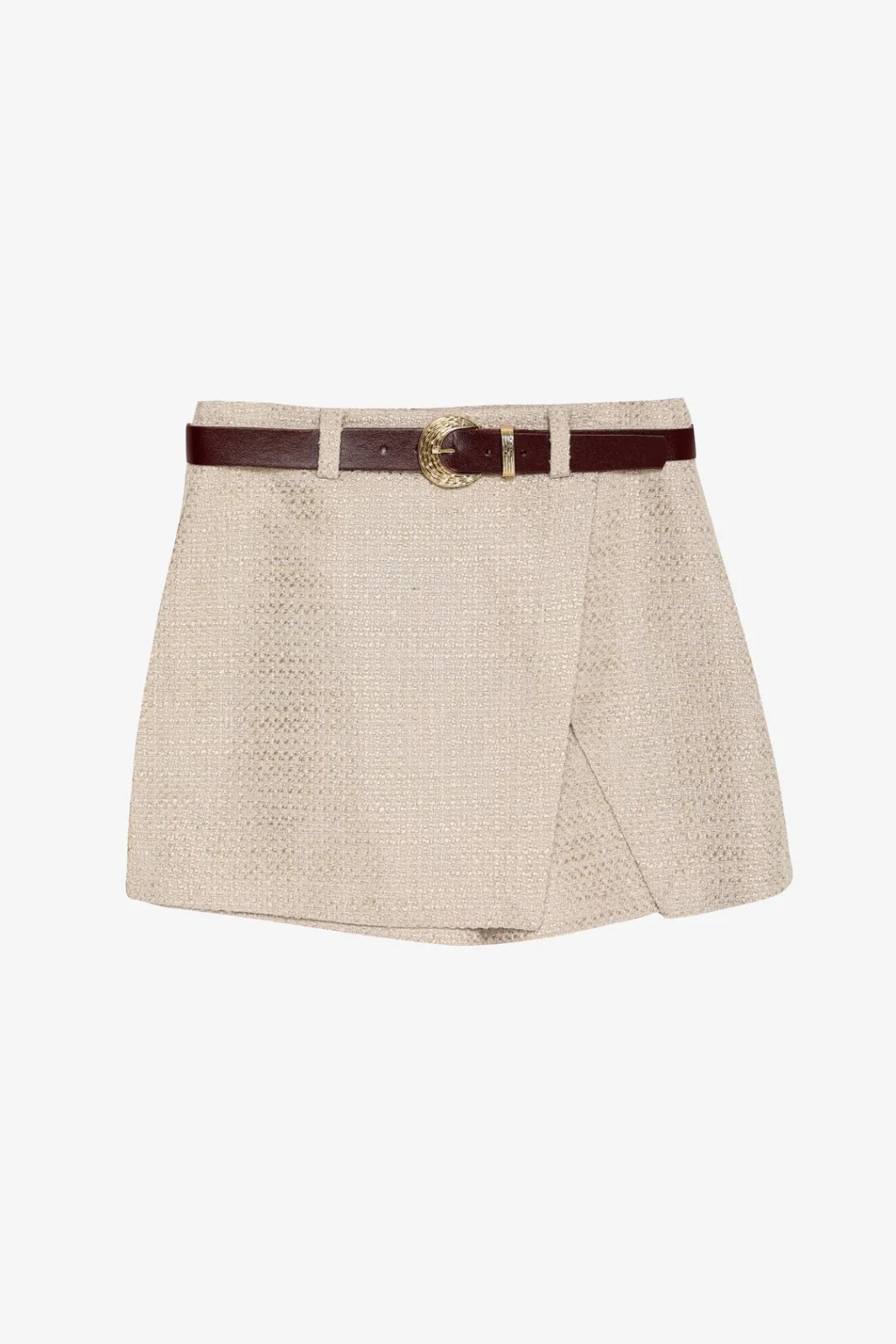 Kemerli Kruvaze Tüvit Şort Etek Bej