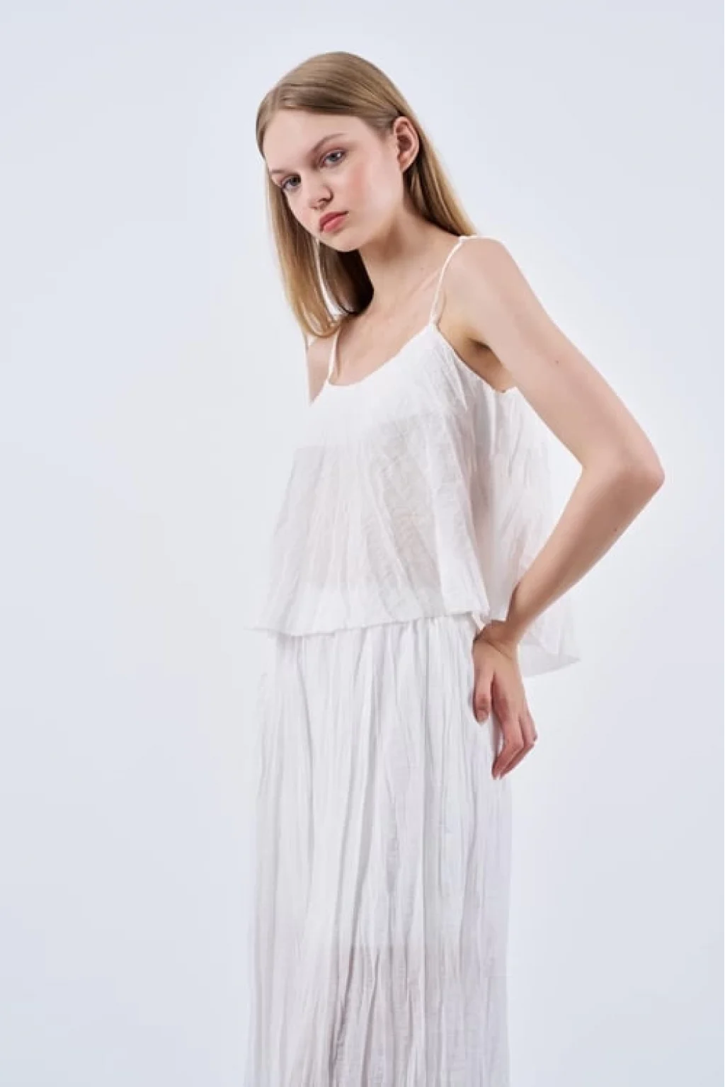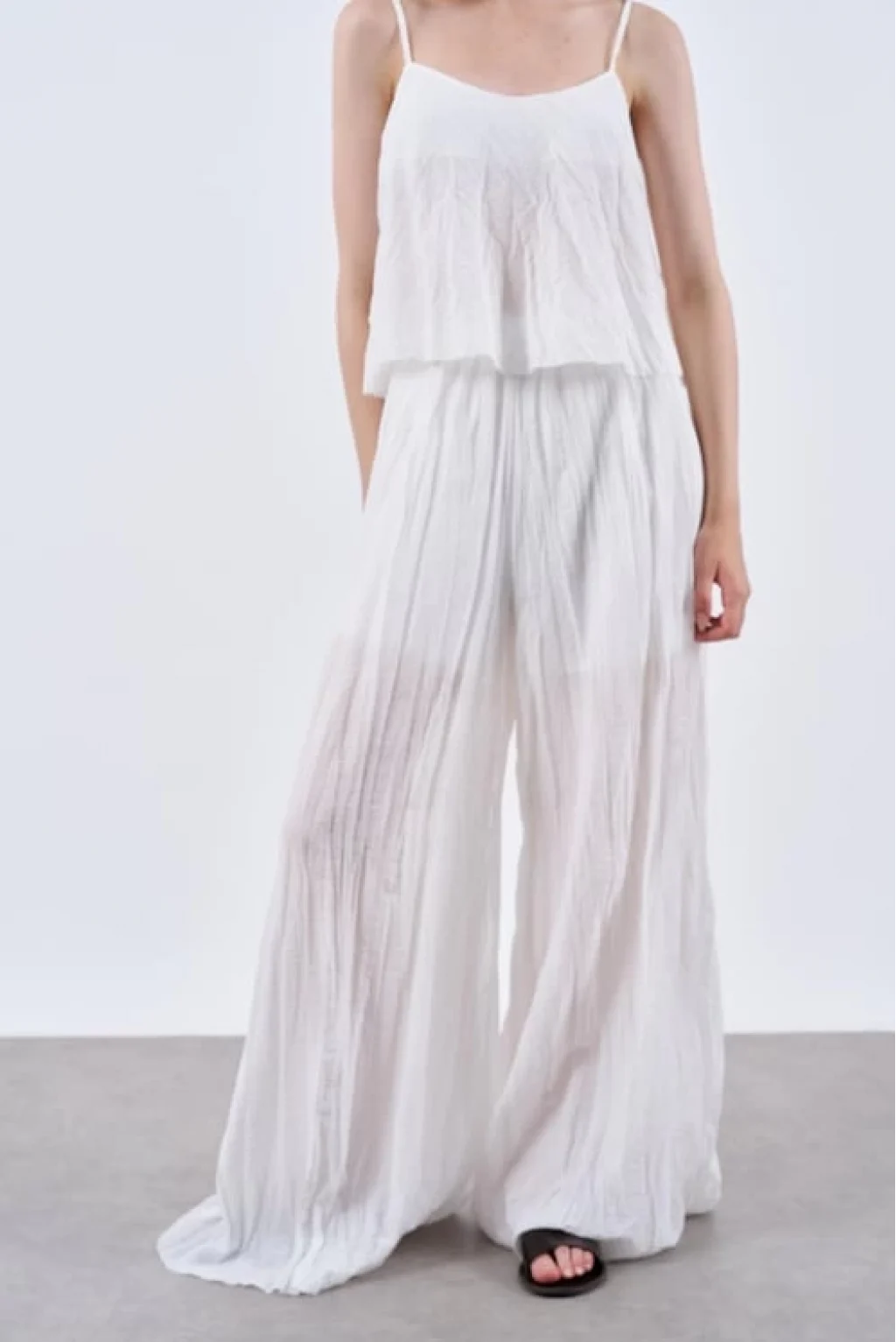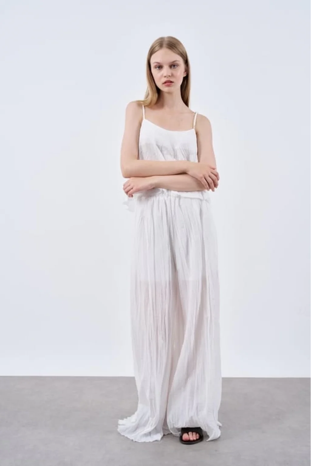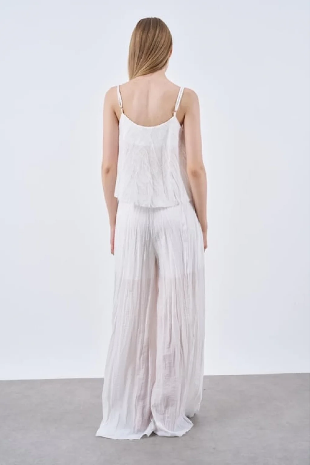 KETEN BLUZ PANTOLON KIRIŞIK TAKIM BEYAZ