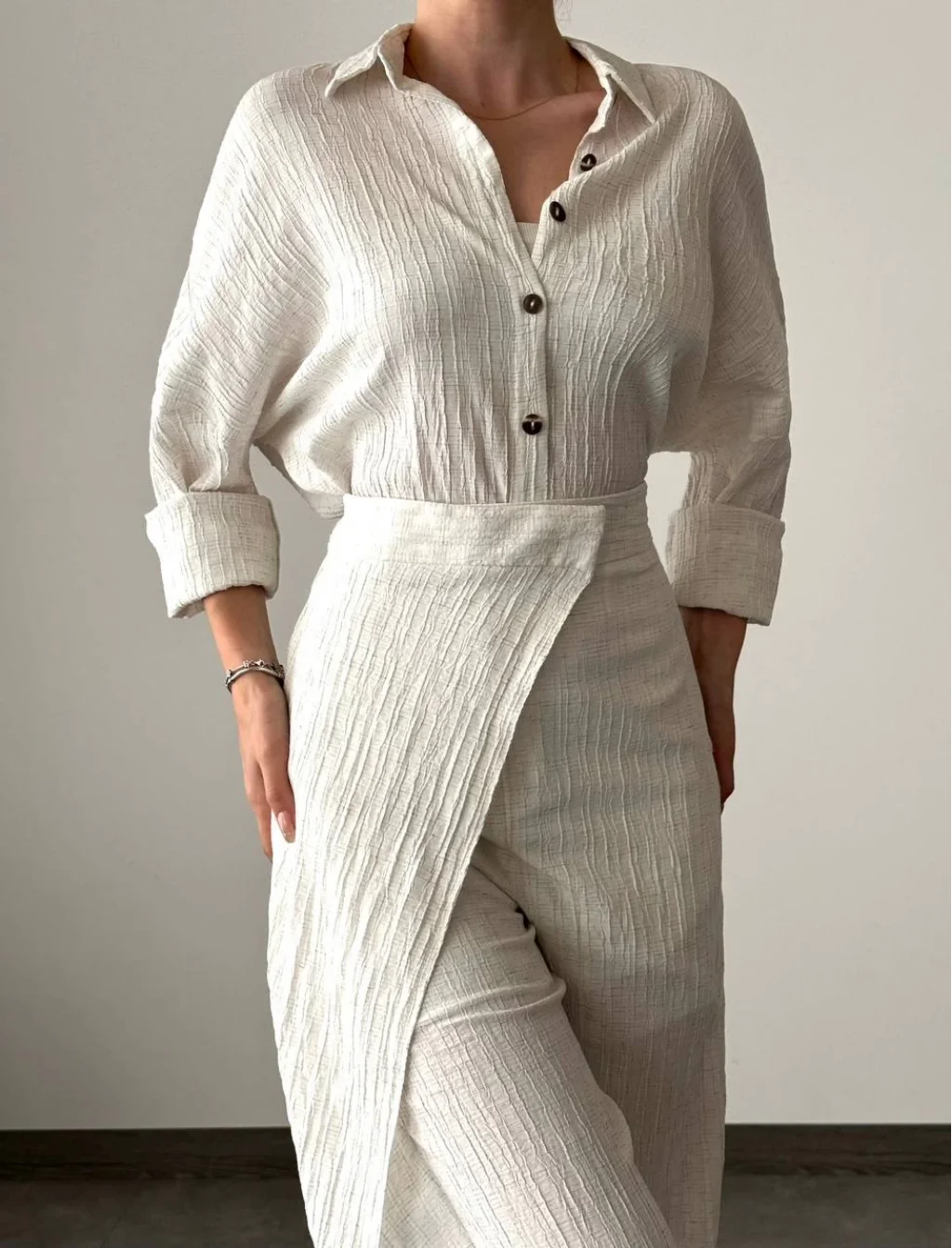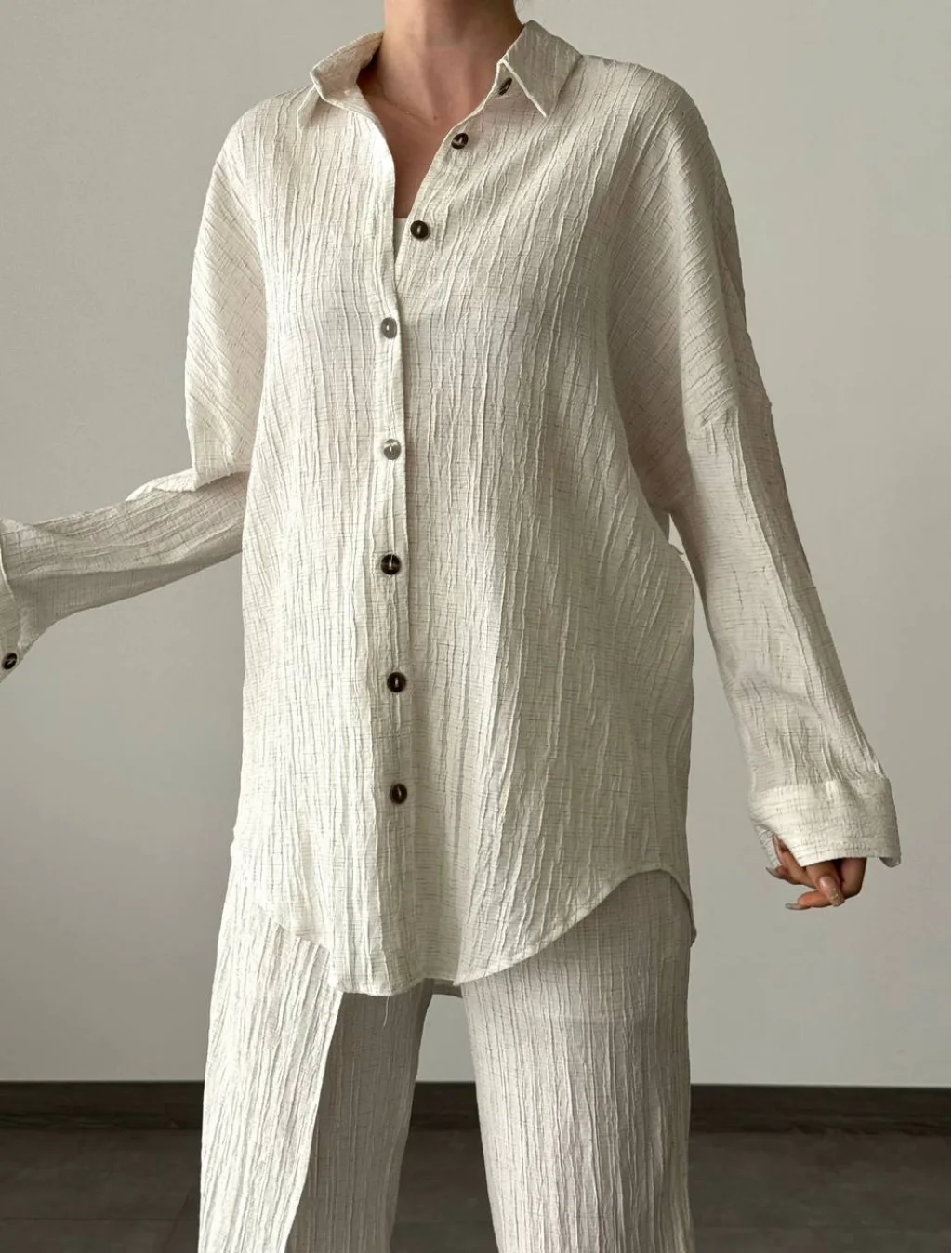 KETEN GÖMLEK PANTOLON TAKIM EKRU