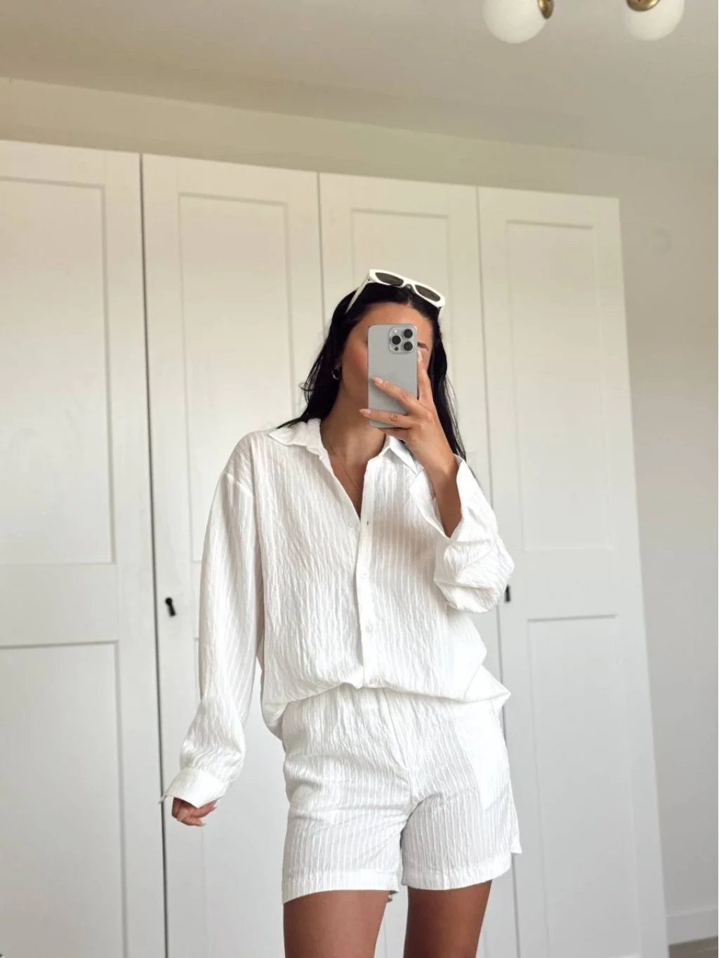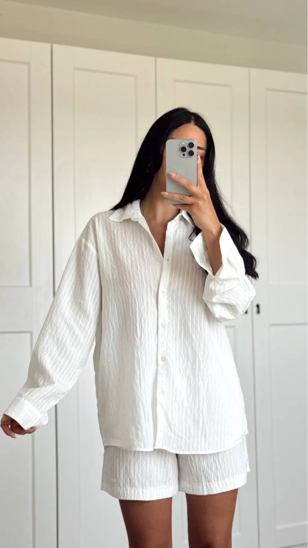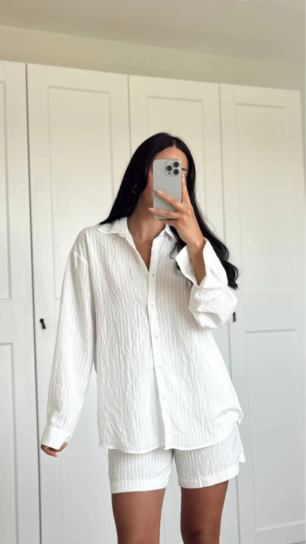 KETEN ŞORT GÖMLEK TAKIM BEYAZ