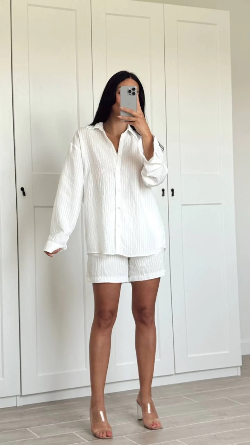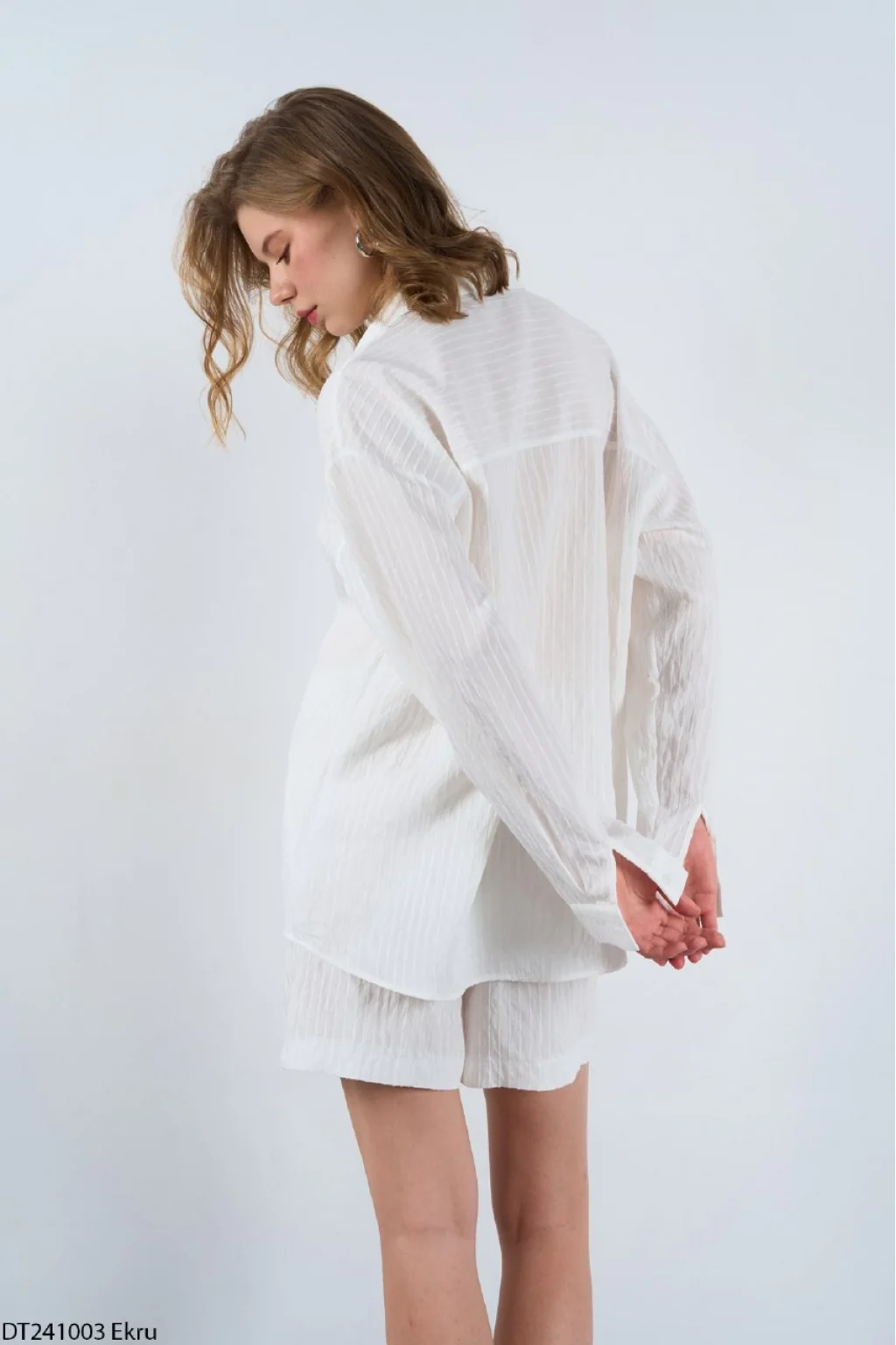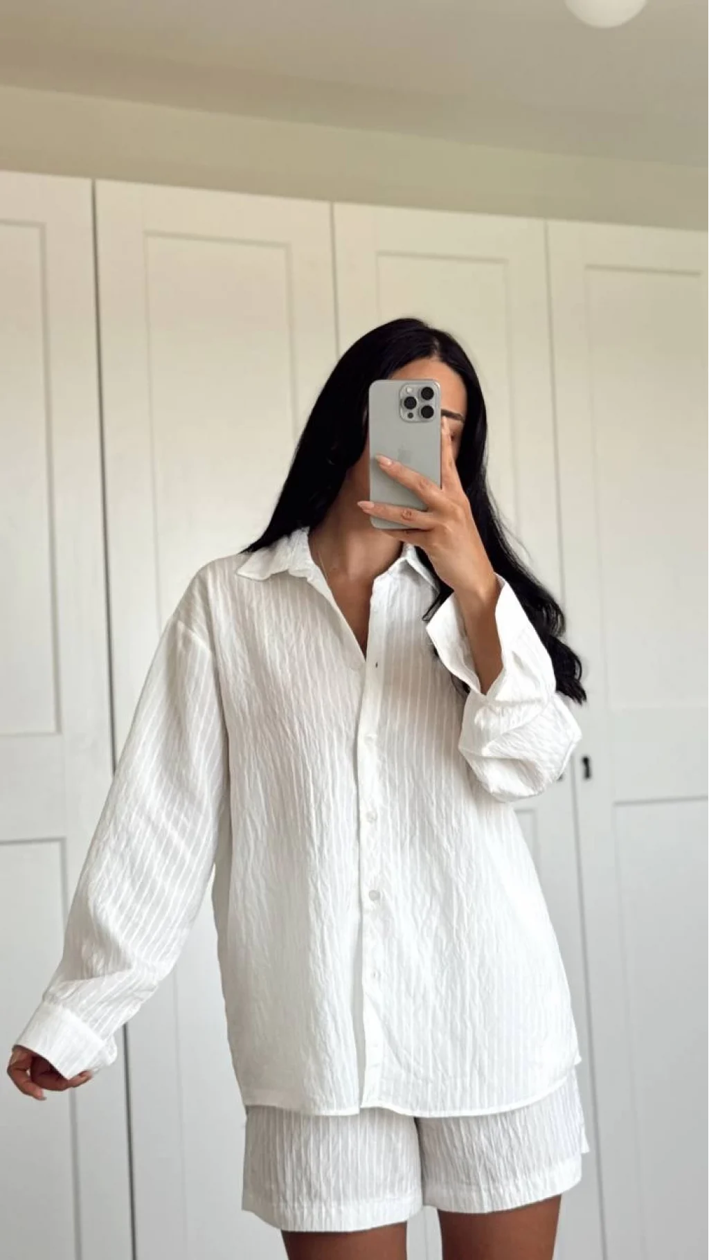 KETEN ŞORT GÖMLEK TAKIM BEYAZ