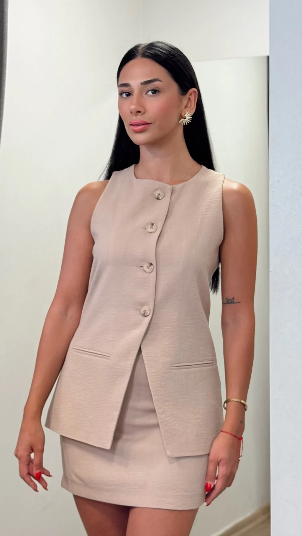 SIFIR KOL, BİSİKLET YAKA, ASTARLI, ÖNÜ DÜĞMELİ, SÜS CEPLİ YELEK