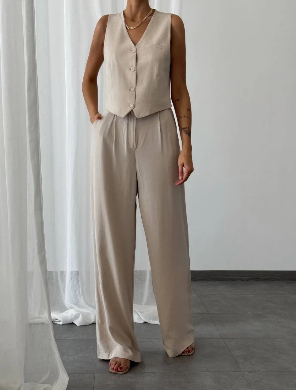 ÖN TEK PİLELİ FERMUAR KAPAMALI YÜKSEK BEL PALAZZO PANTOLON