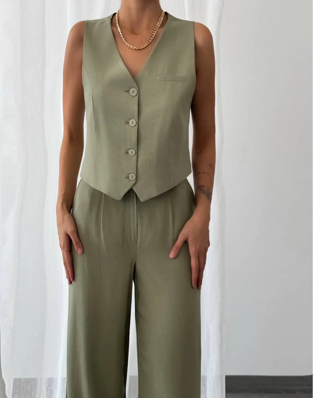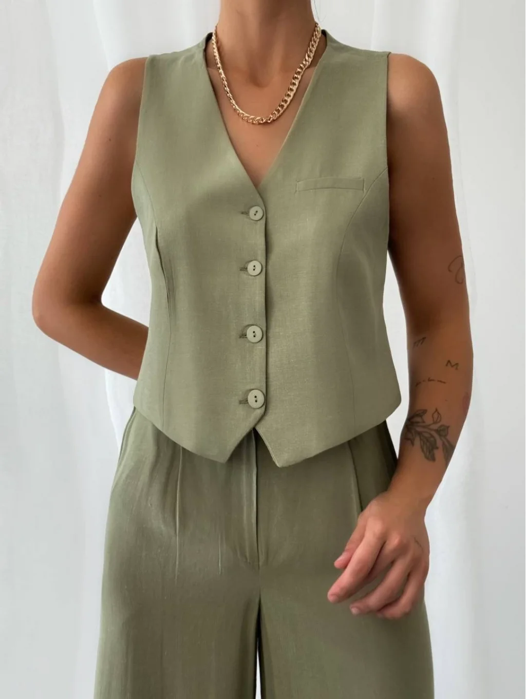 KETEN YELEK PANTOLON TAKIM HAKİ