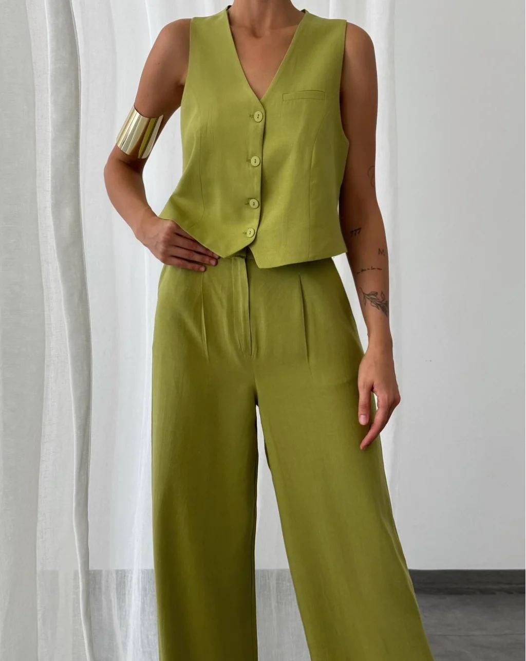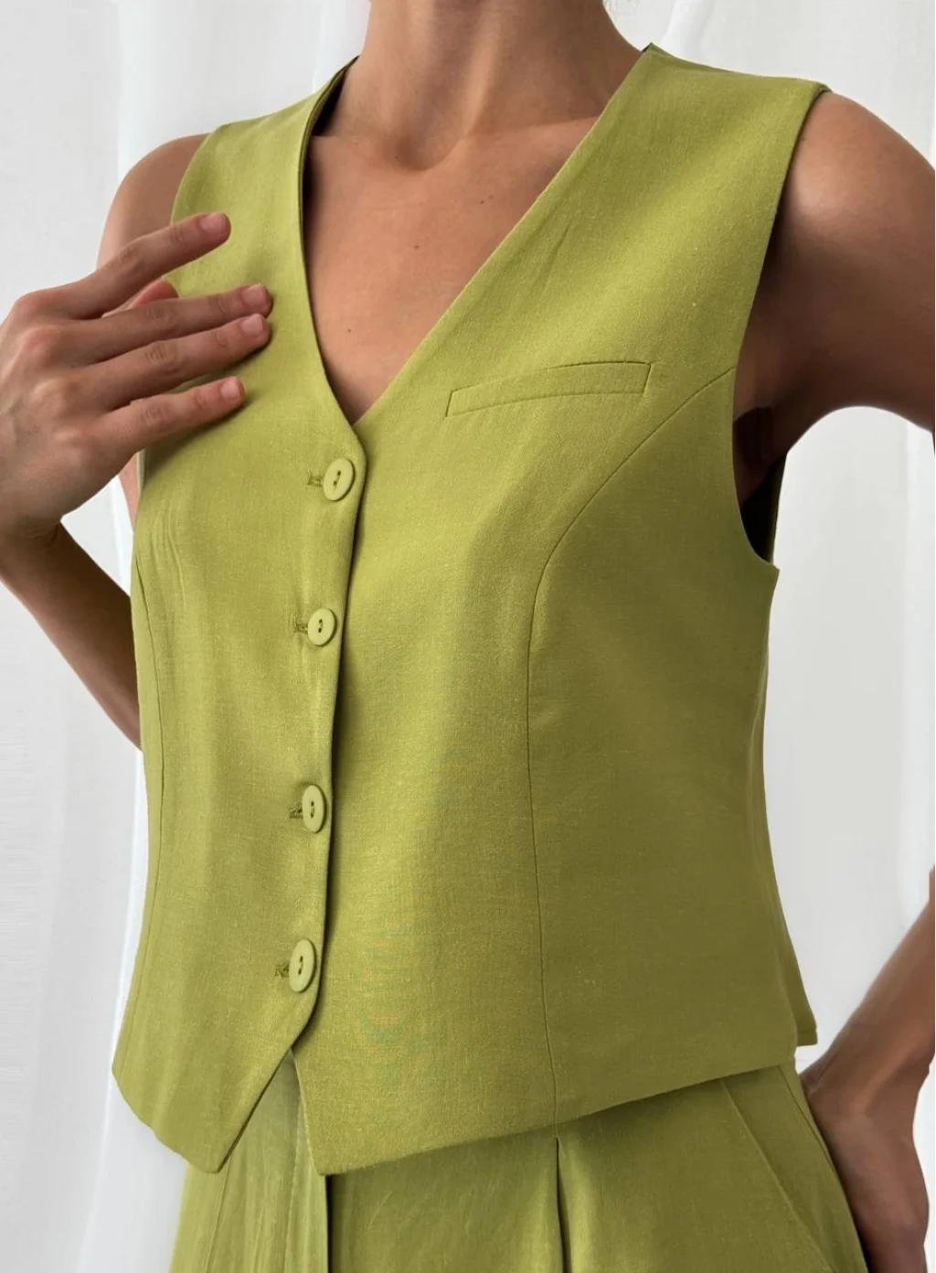 KETEN YELEK PANTOLON TAKIM KİVİ