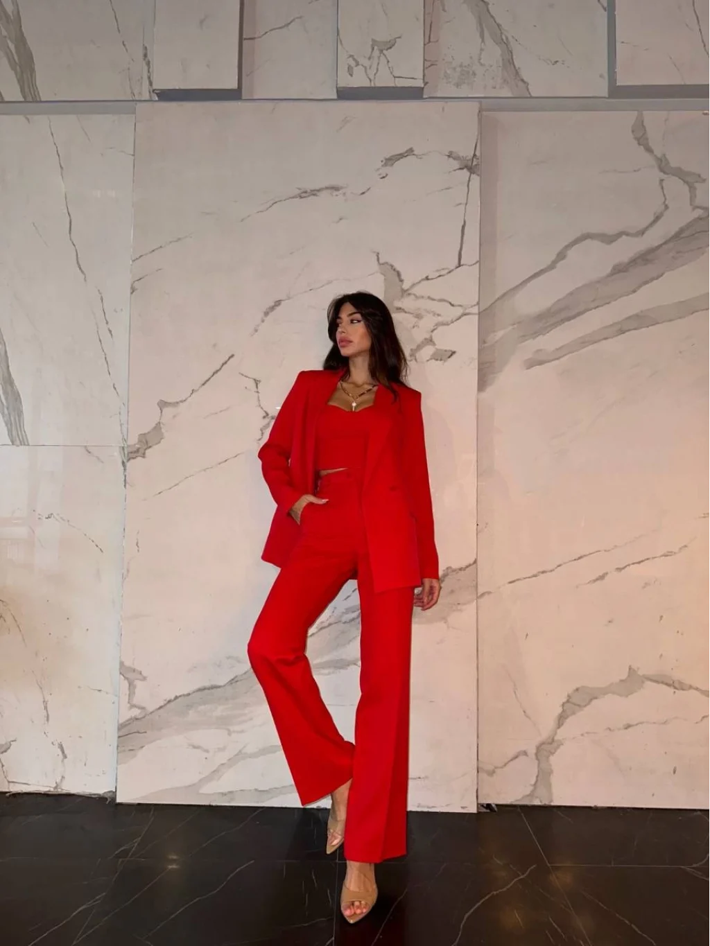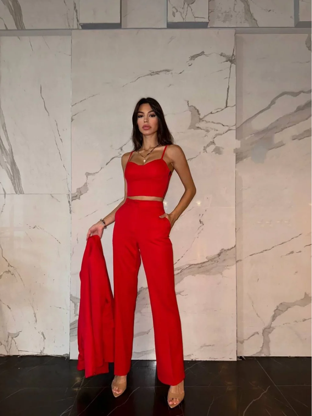 PREMİUM CEKET CROP PANTOLON TAKIM KIRMIZI