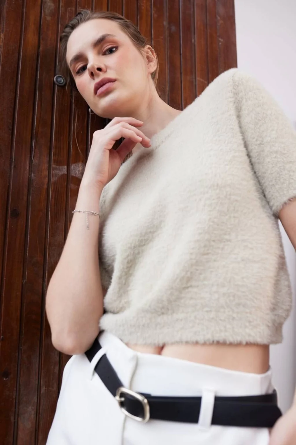 KISA KOLLU YUMOŞ TRİKO KAZAK BEJ