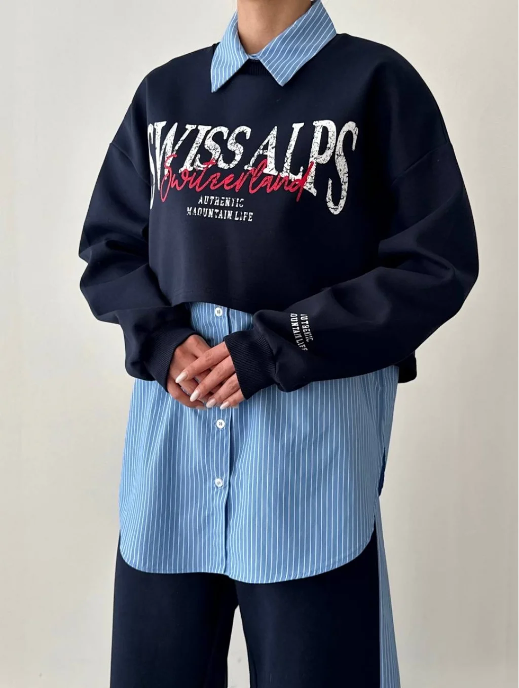 MYRA'dan kontrast şeritli bel detaylarıyla şık bir görünüm sunan mavi bol paça pantolon.
