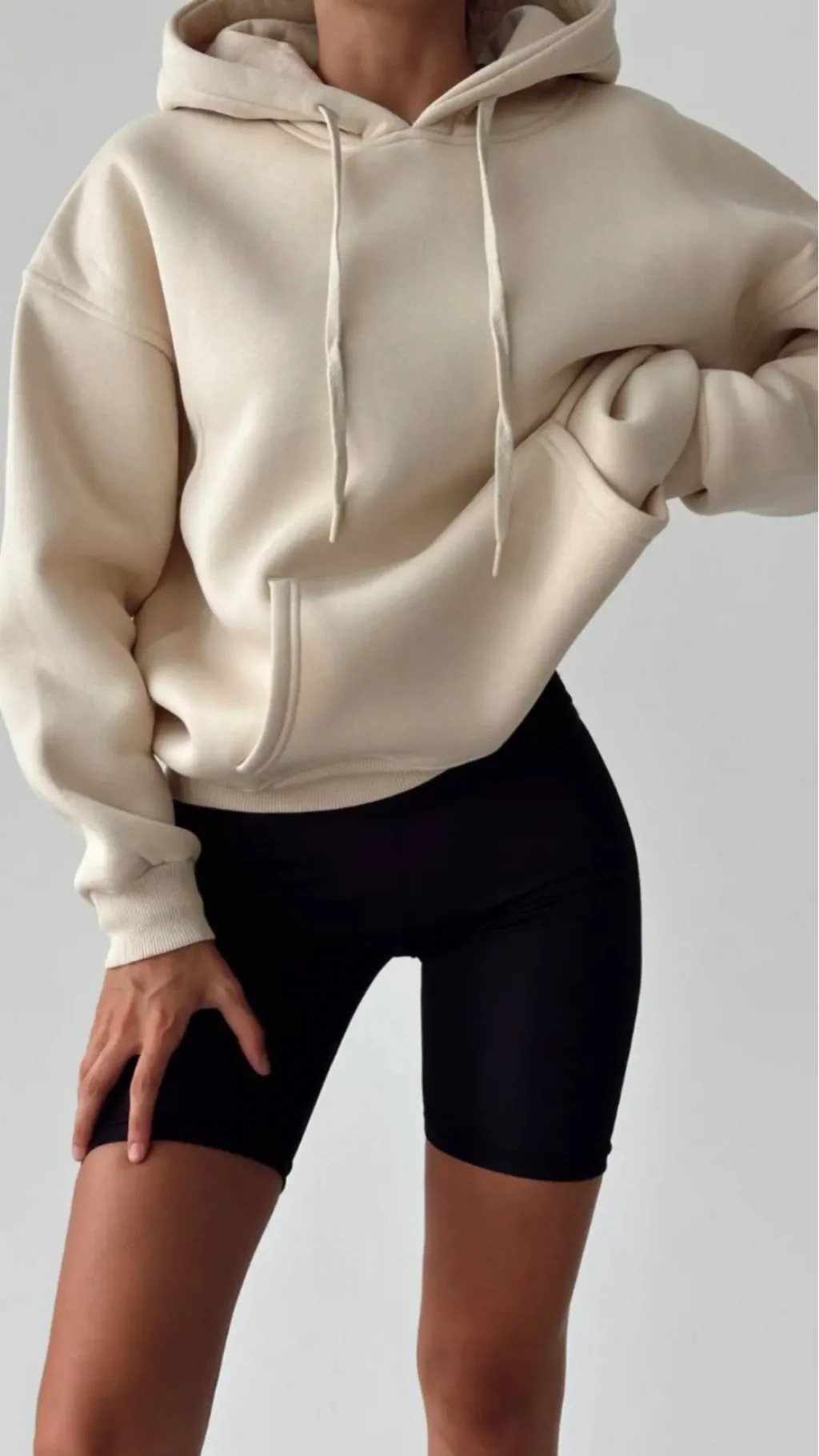 KREM KAPÜŞONLU SWEATSHİRT