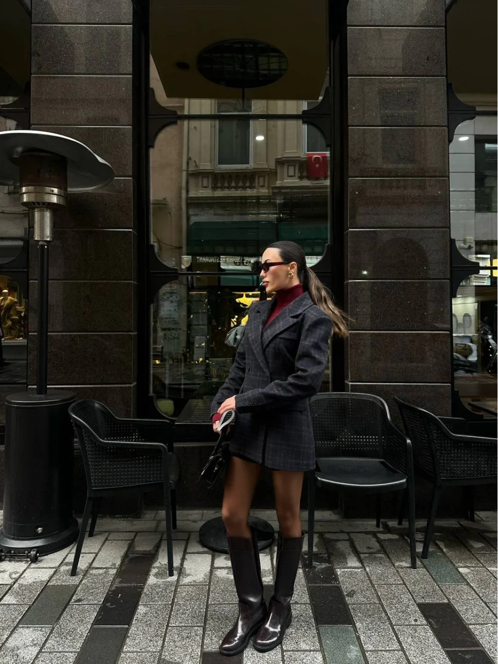 Kruvaze Yaka, İç Astarlı, Önü Düğme Kapamalı, Kareli Desen, Yünlü Kumaş Ceket