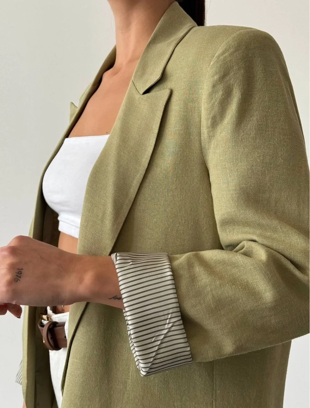 KRUVAZE KOLU KATLI KETEN CEKET HAKİ