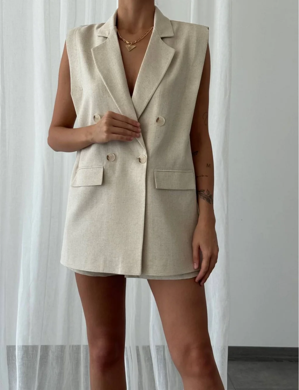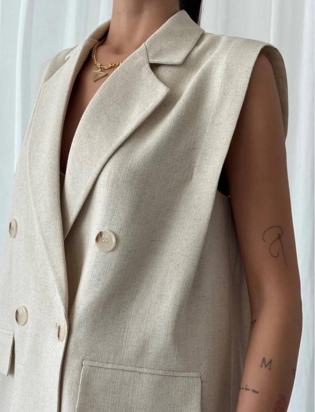 ÖNÜ DÜĞME KAPAMALI İÇ ASTARLI GİZLİ CEPLİ UZUN OVERSİZE YELEK