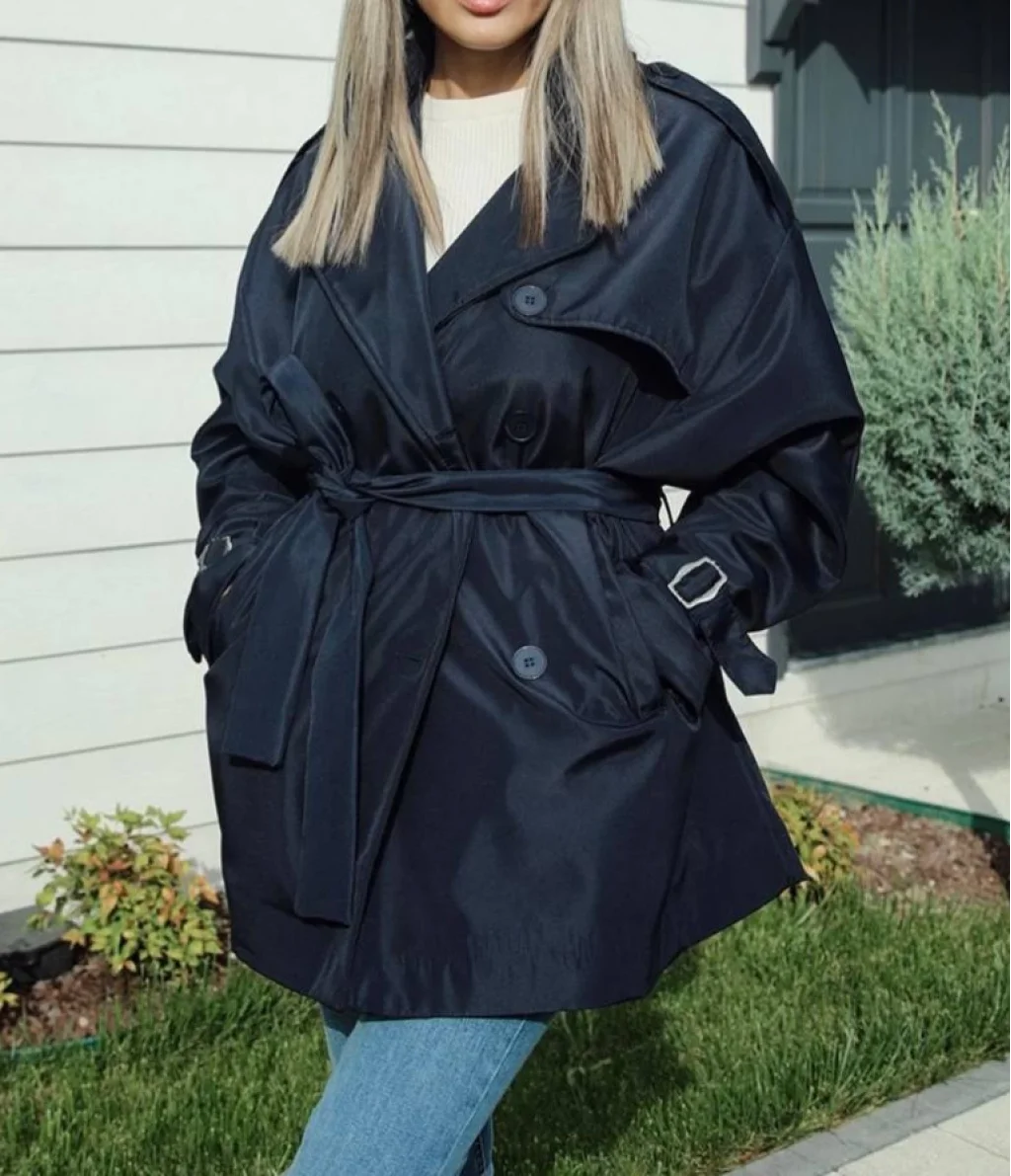 KUŞAKLI ASTARLI KISA TRENÇKOT LACİVERT