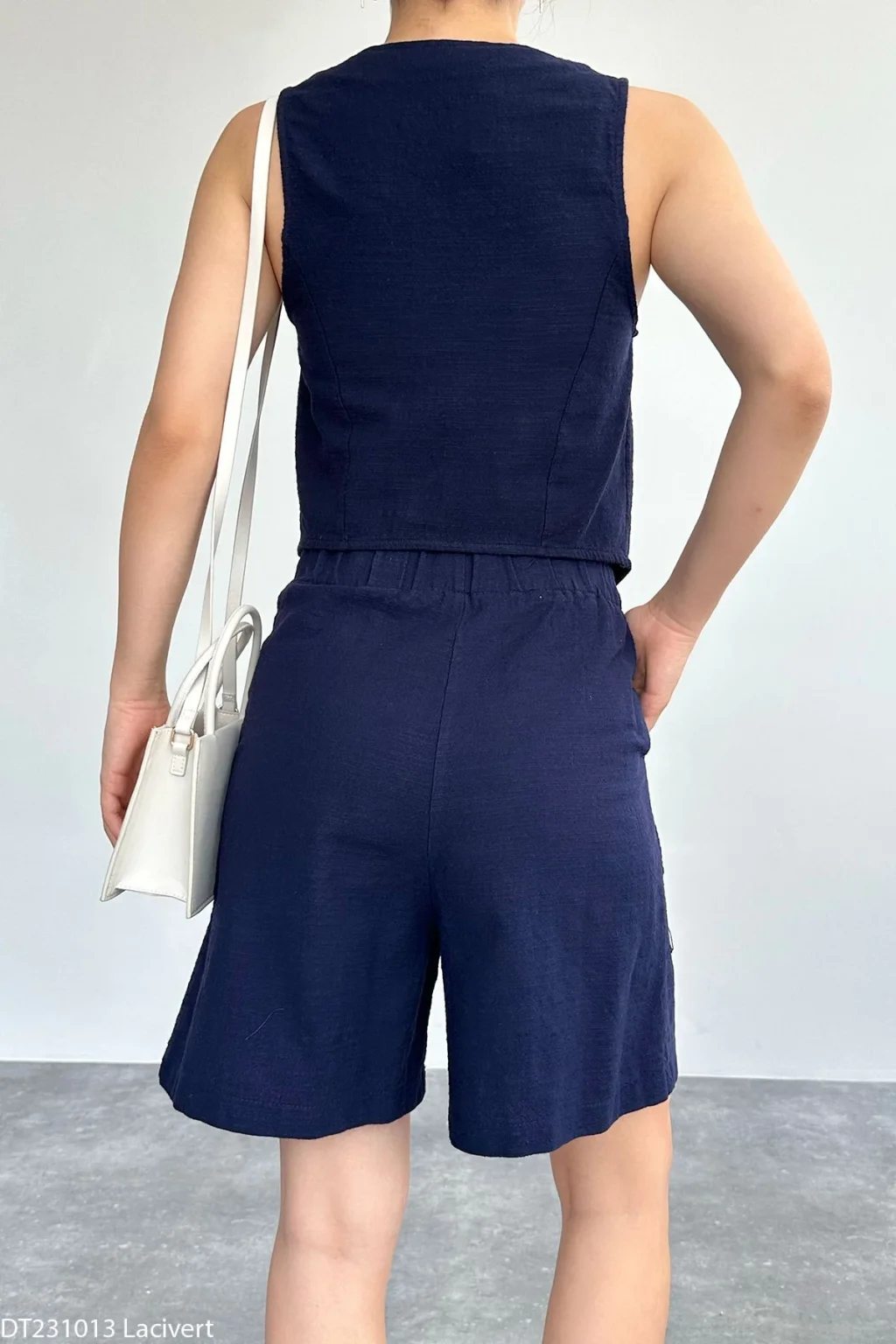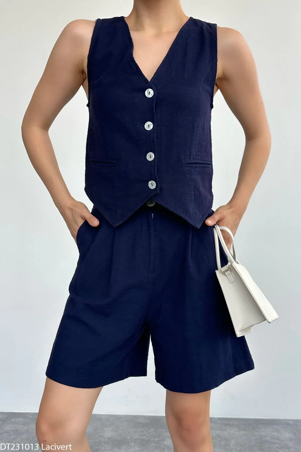 Lacivert Keten Şort Yelek Takım