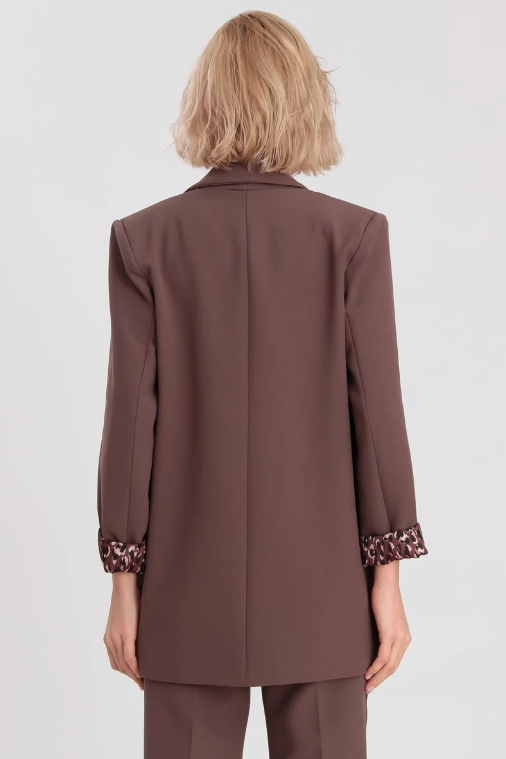 Myra Leopar Astarlı Kahverengi Blazer Ceket