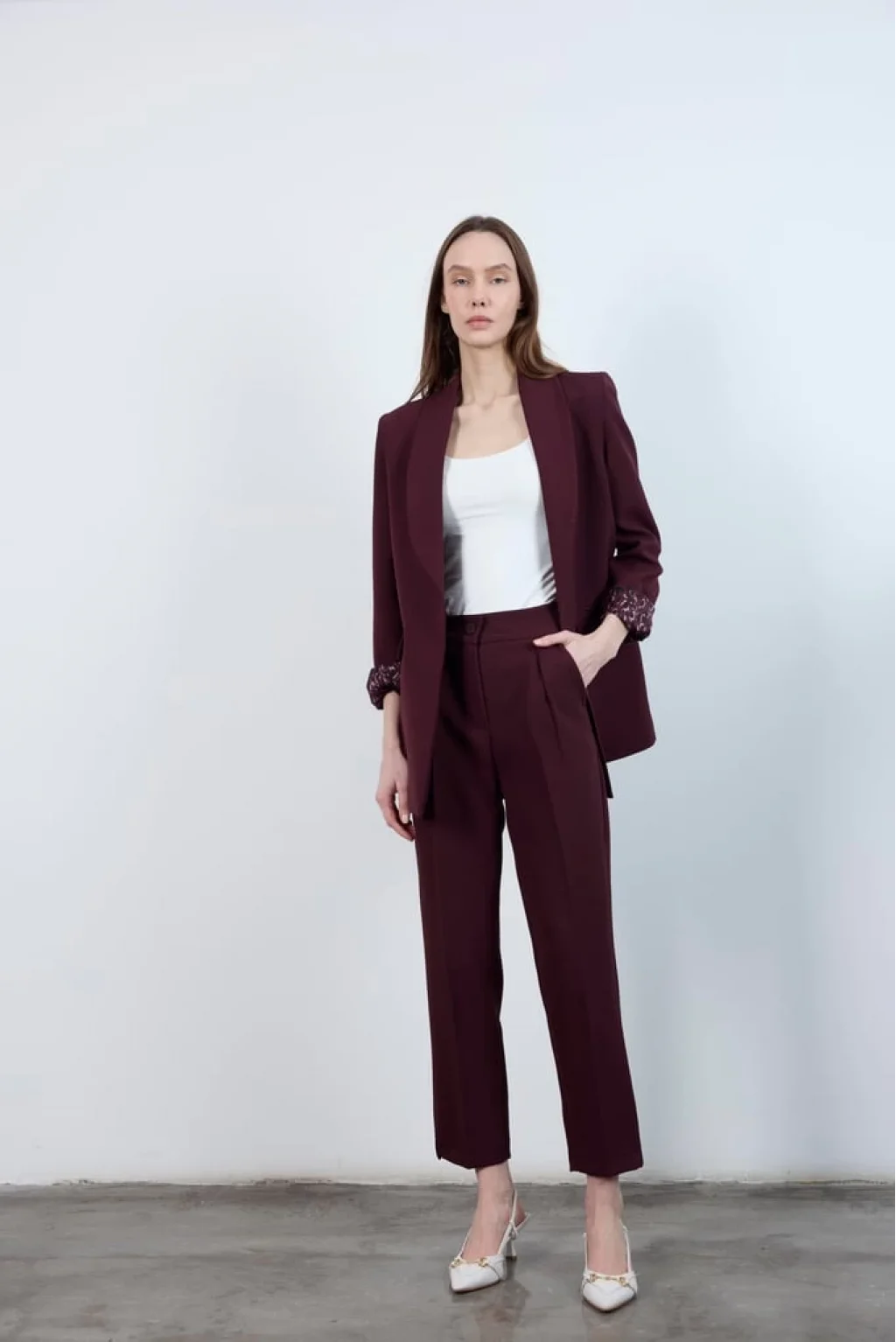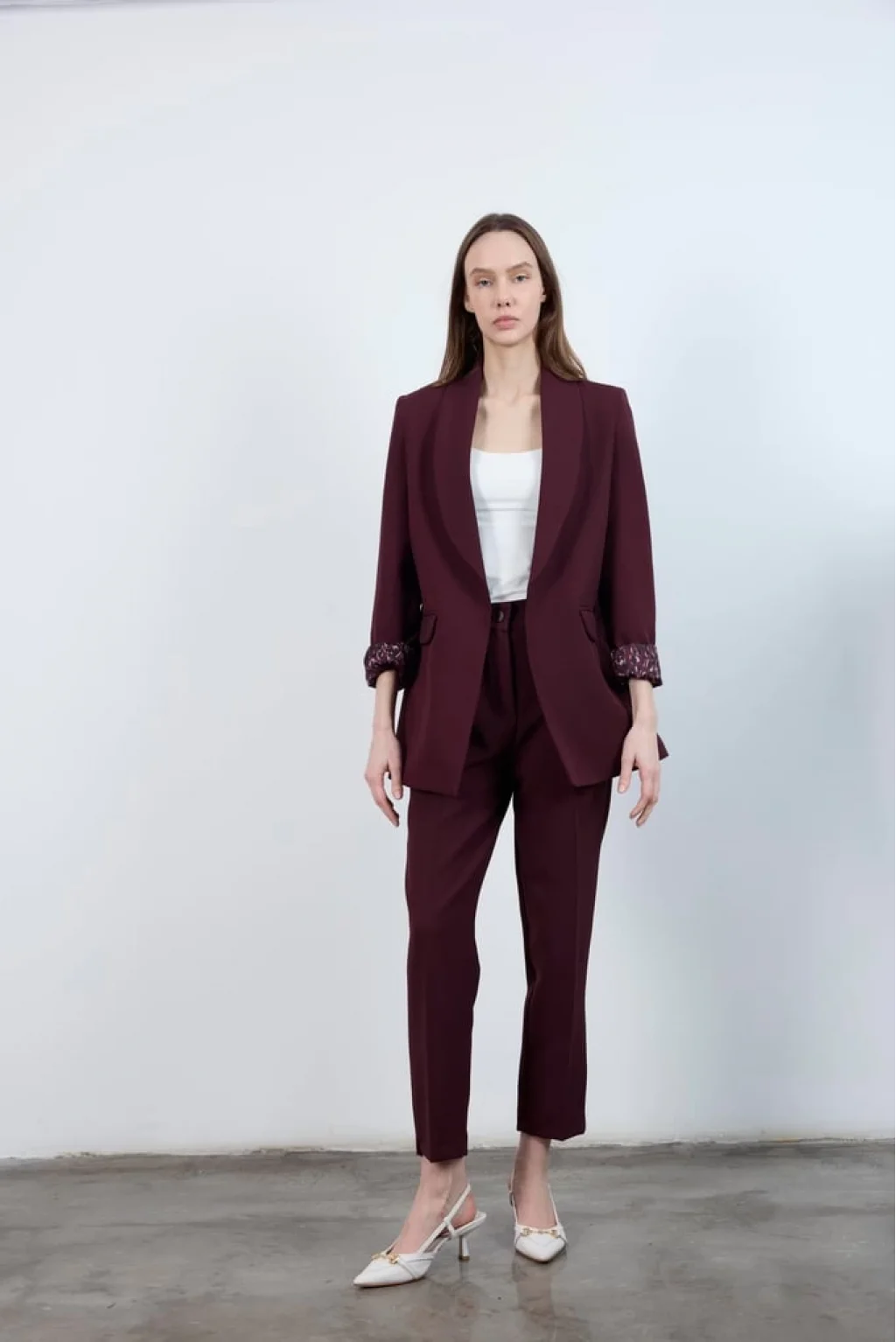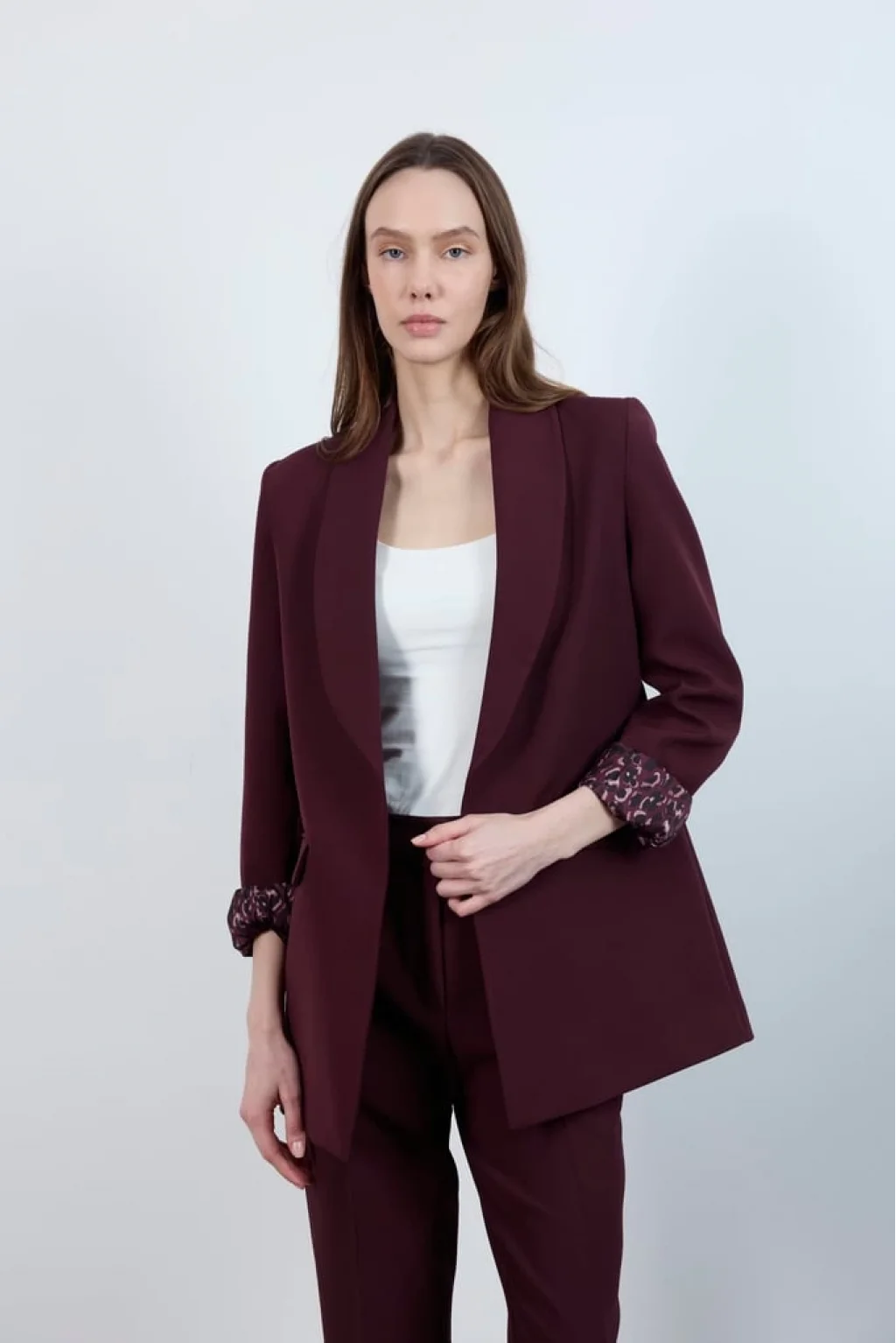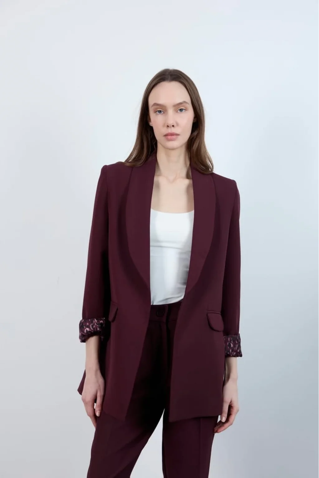 Kol Katlamalı Düğmesiz Premium Mürdüm Blazer Ceket