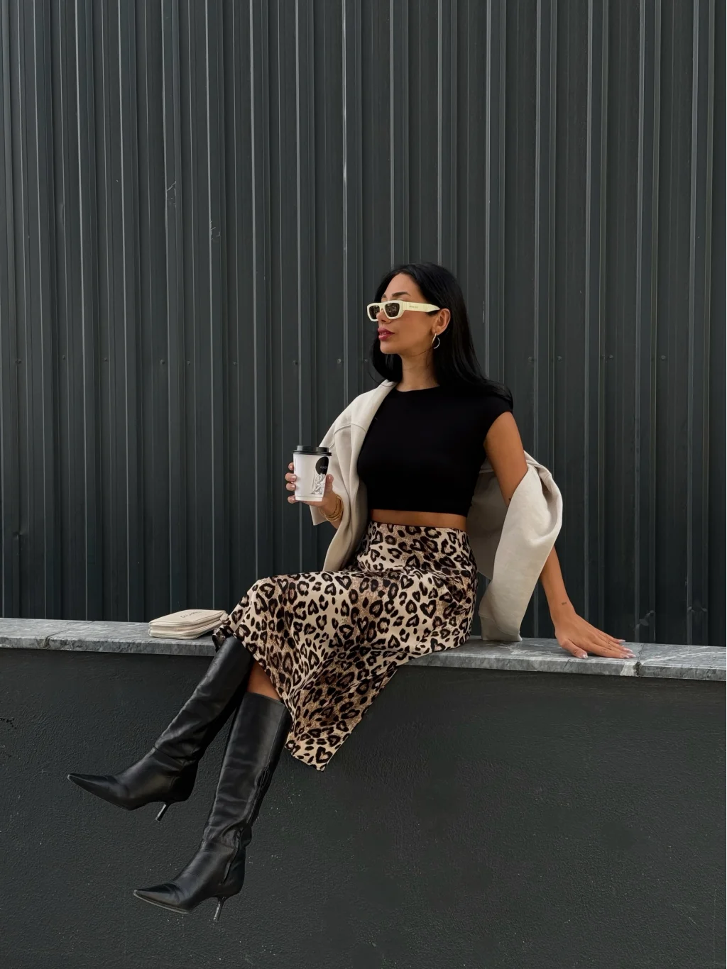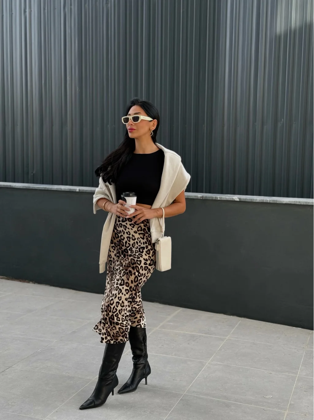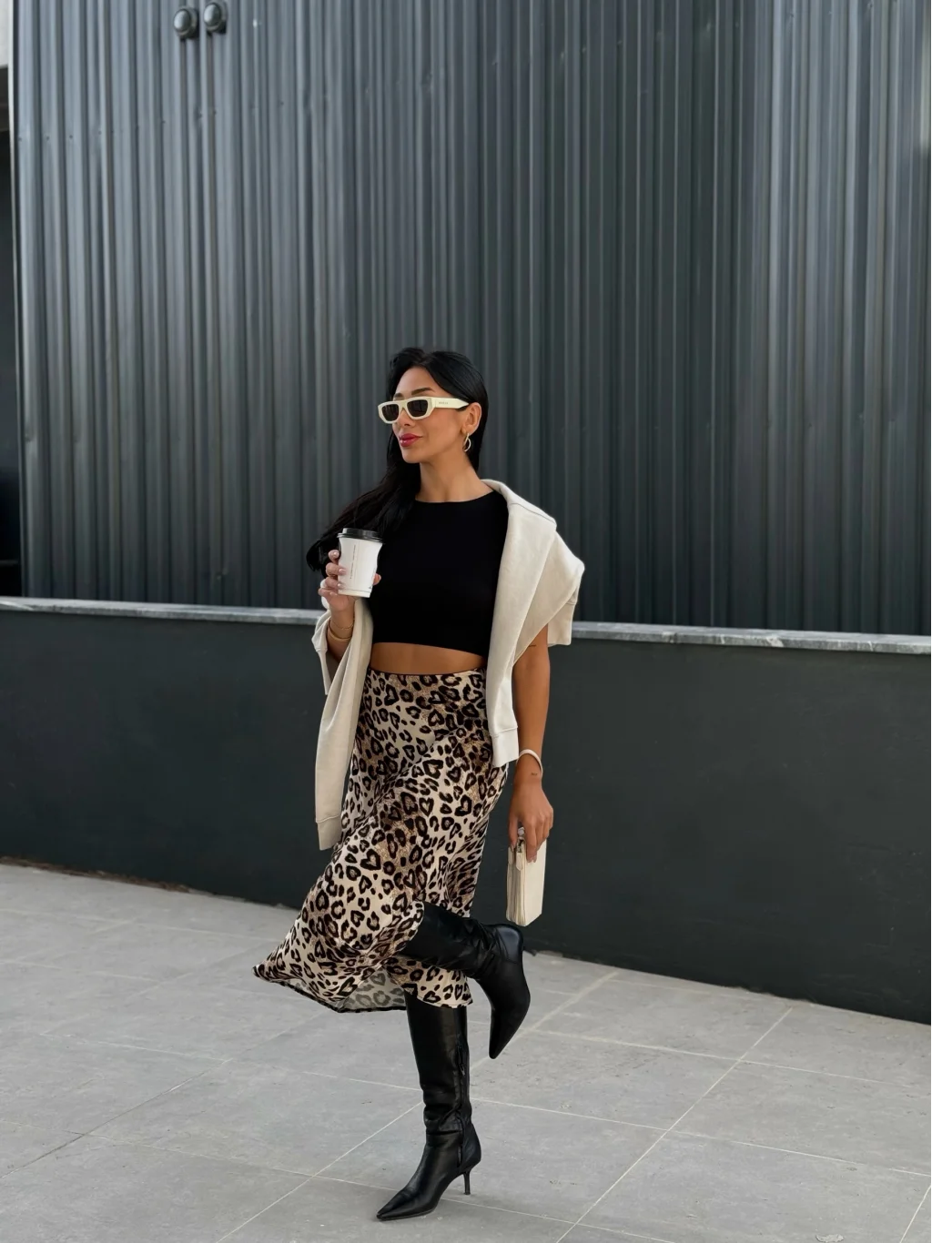 Leopar Desen Saten Etek
