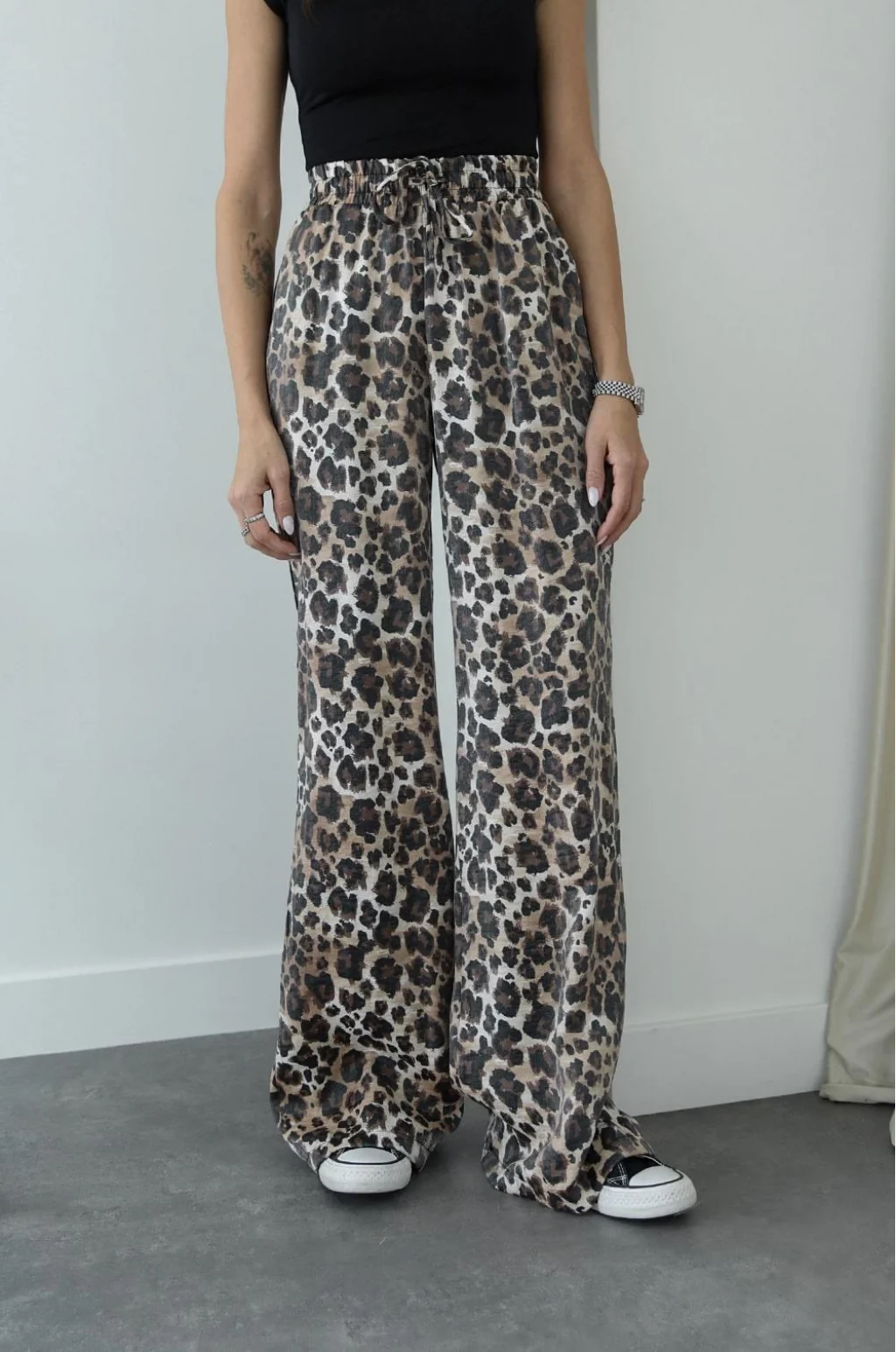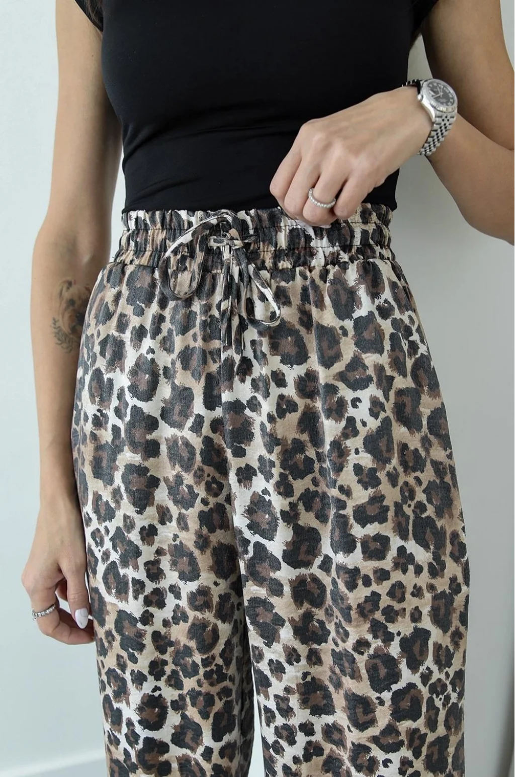 LEOPAR DESENLİ DÖKÜMLÜ PANTOLON BEJ